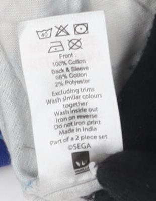 Get your boy ready for a fun-filled bedtime with this Sonic the Hedgehog pyjama top. Designed in a vibrant combination of blue and grey, it features a striking graphic print of the beloved character Sonic. Crafted for comfort, this long sleeve pyjama top is made of a soft jersey blend of 98% cotton and 2% polyester, ensuring a comfortable night's sleep. With its crew neck and pullover style, it's easy to wear and perfect for all seasons. This lightweight pyjama top is part of a 2-piece set, making it a delightful addition to your child's nightwear collection. Although pre-owned, it remains in excellent condition, showing no signs of significant wear. Though no original sales tags are present, the quality and charm of this pyjama top make it a desirable choice for fans of the iconic gaming character. Ideal for boys aged 8-9 years, this nightwear piece encompasses both style and nostalgia, allowing your child to relax and dream alongside Sonic. Machine washable for your convenience, it promises ease of care and sustainability. Let your little fan's imagination run wild during bedtime with this Sonic-themed pyjama top—a must-have for young gamers and cartoon enthusiasts alike.