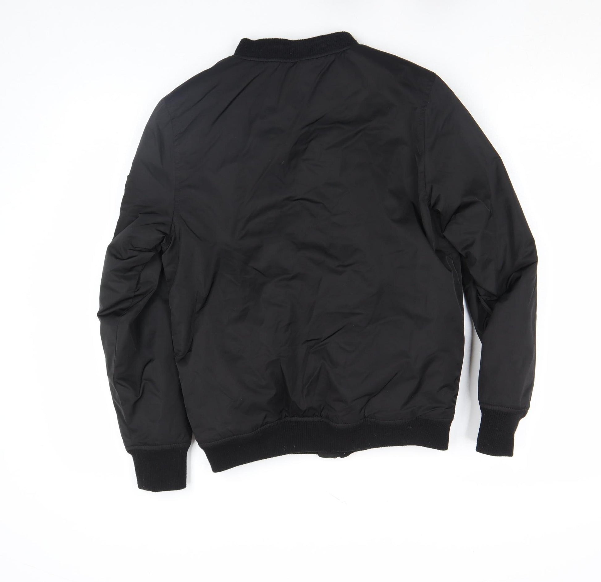 Boys Black Bomber Jacket 12-13 Years Lined Zip Pockets Polyester