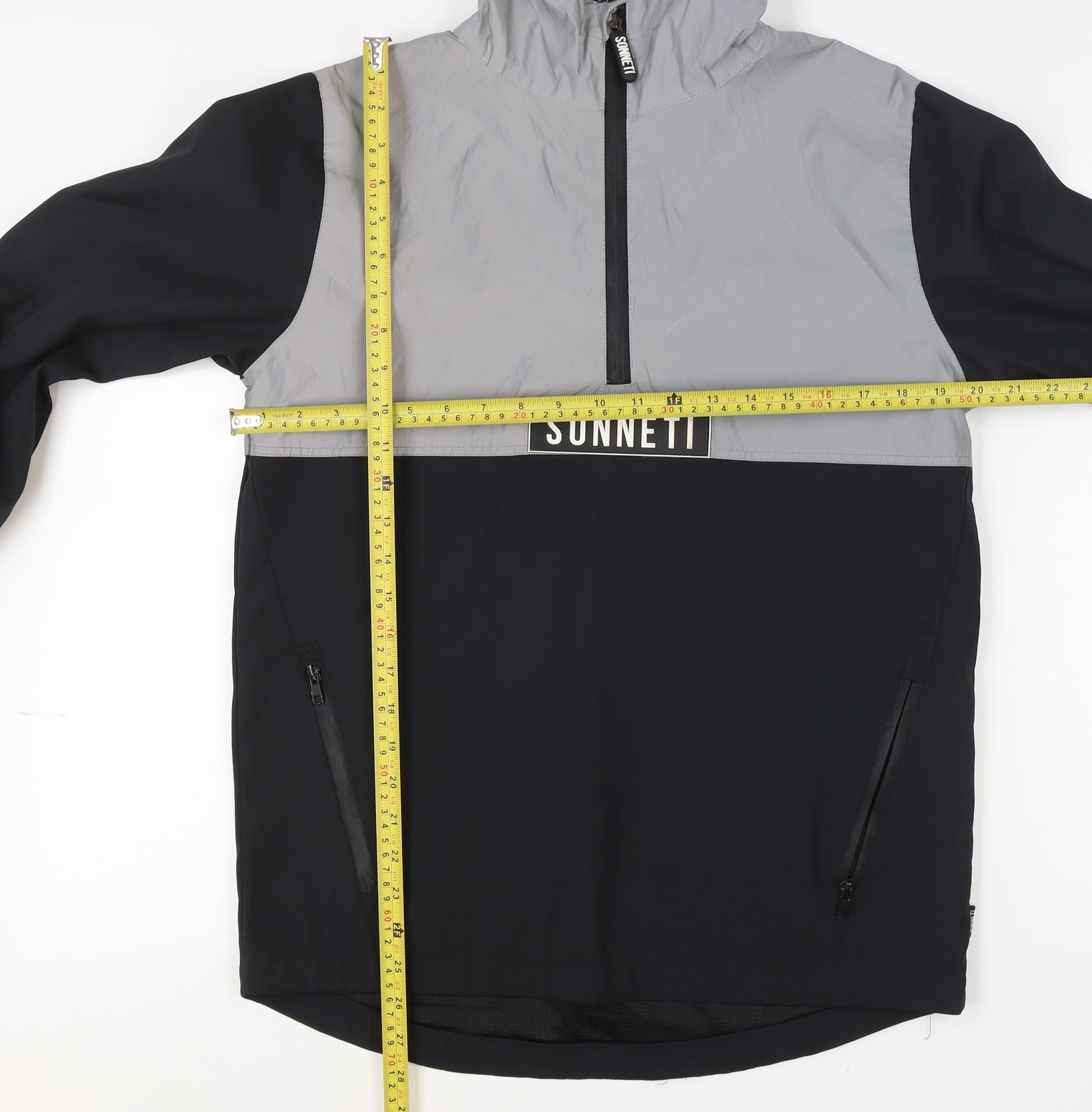 Give your young one a fresh, street-ready look with this Sonneti boys’ anorak jacket in grey and black. Designed for style and practicality, this mid-length hooded piece keeps them comfortable across transitional seasons including autumn, spring, and cooler winter days. The jacket features a modern colourblock pattern and a lightweight woven polyester shell that provides a comfortable, water-resistant feel – perfect for day-to-day activities and casual outdoor use. A half-zip closure makes it easy to layer, while the adjustable hood and long sleeves offer protection from the elements. It also includes practical zipped side pockets to keep essentials secure. The Sonneti logo at the front adds a signature branded accent, combining sporty urban appeal with functional details. The soft polyester lining ensures comfort without adding unnecessary bulk. In a regular fit, this piece pairs effortlessly with jeans or joggers for a versatile, everyday look ideal for school, walking, or hanging out with friends. Although in very good pre-owned condition, minor wear and light marks are visible near the shoulder, reflecting gentle previous use. There are no major flaws, tears or stains, and while the original tags are not present, the anorak remains in excellent wearable shape. Machine washable and easy to maintain, this Sonneti jacket is an affordable and stylish addition to any boy’s outerwear rotation. Based on current resale trends for similar items, this piece offers great value and long-lasting wear. Grab this Sonneti boys' hooded grey and black anorak now and give your child a modern, practical jacket fit for adventure.
