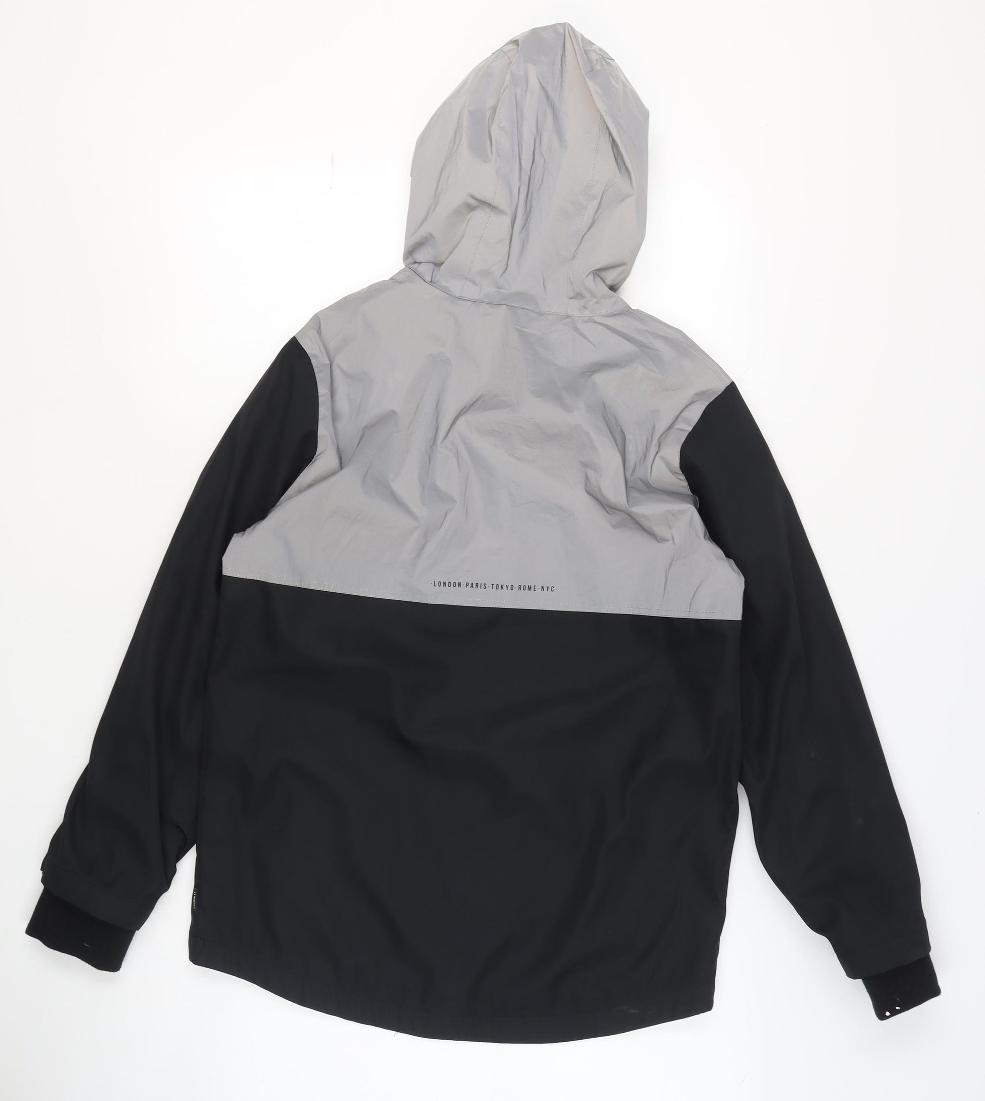 Boys Grey Black 12-13 Years Anorak Hooded Jacket