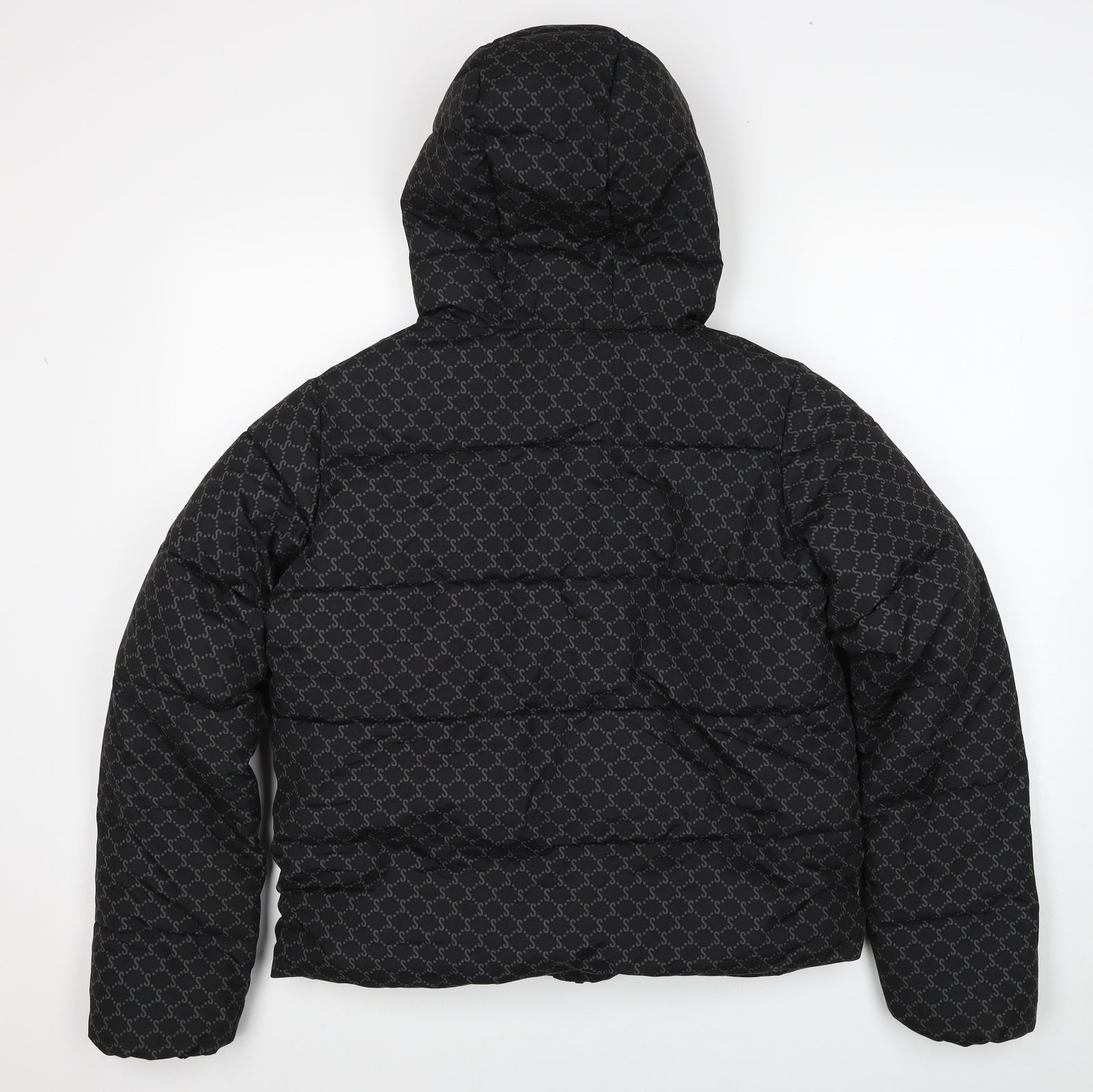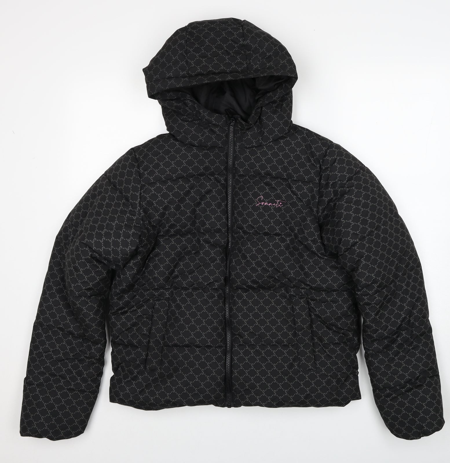 Girls Black Geometric Puffer Jacket Jacket Size 13-14 Years Zip