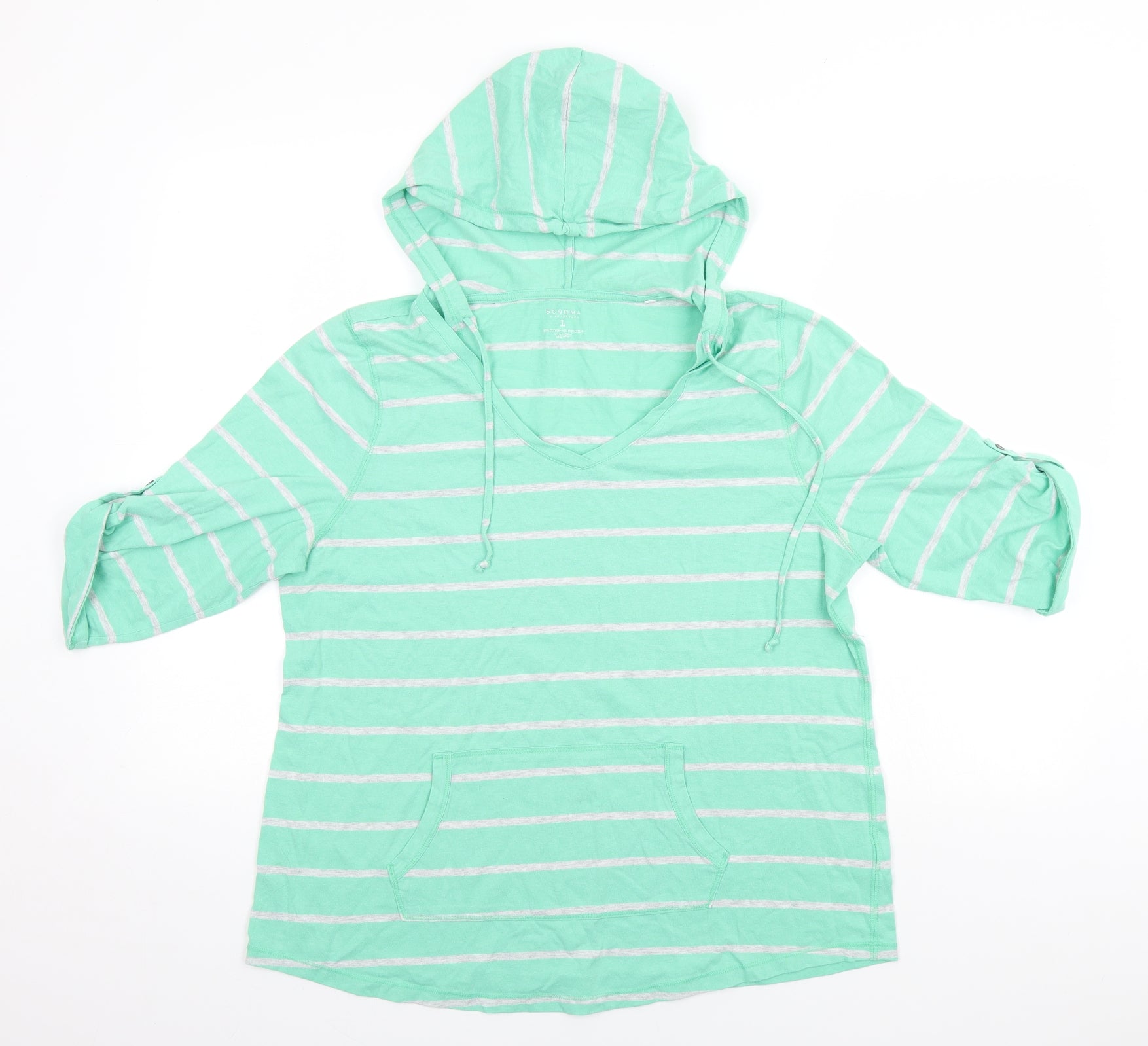 Plus Eighteen Men's Green Pullover Hoodie L Graphic Print Cotton Blend