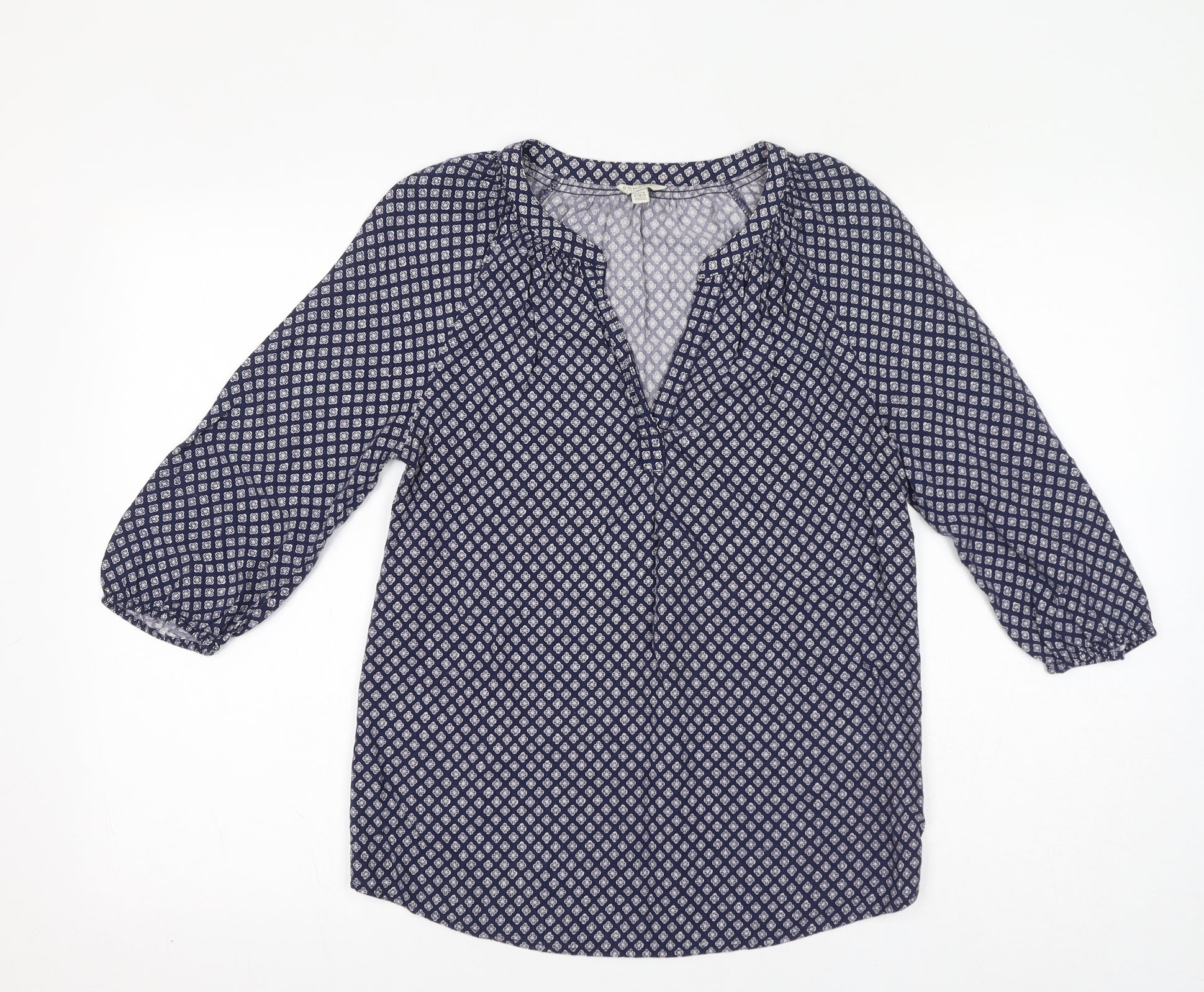 Womens Blue Geometric Viscose Basic Blouse Size XS V-Neck