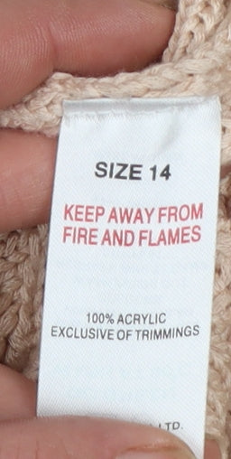 Marks and Spencer Women Beige Crew Neck Button Sleeve Jumper Size 14