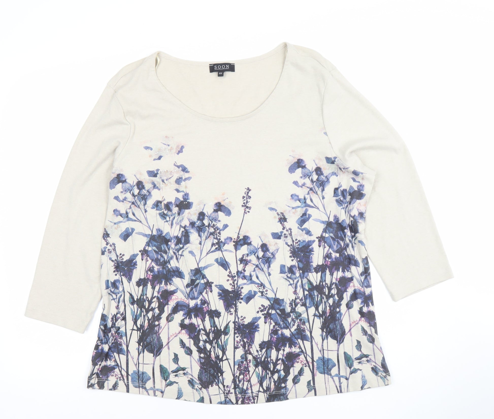 SOON Womens Beige Floral 3/4 Sleeve Scoop Neck T-Shirt Size 22
