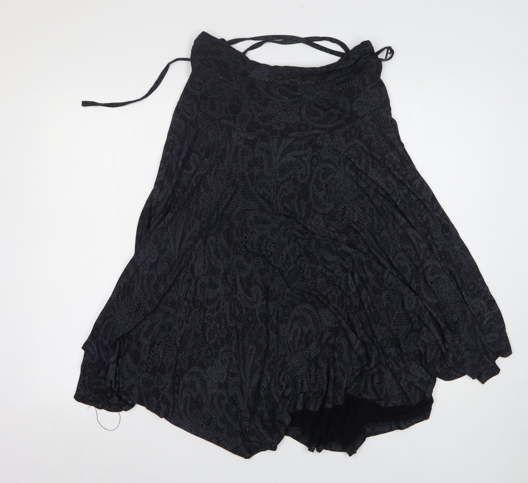 Womens Black Geometric Viscose A-Line Skirt Size 10