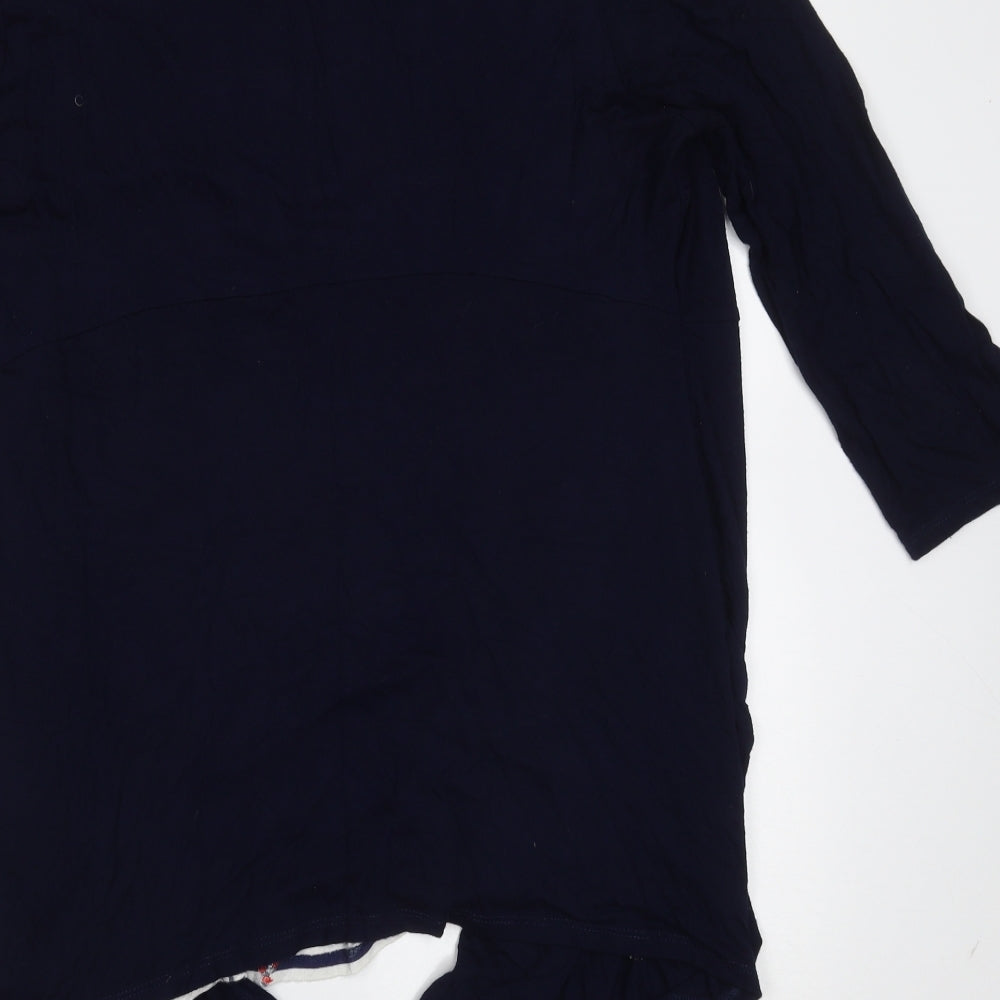 Womens Blue Floral Viscose Basic Blouse Size 14 Round Neck - built in cardigan