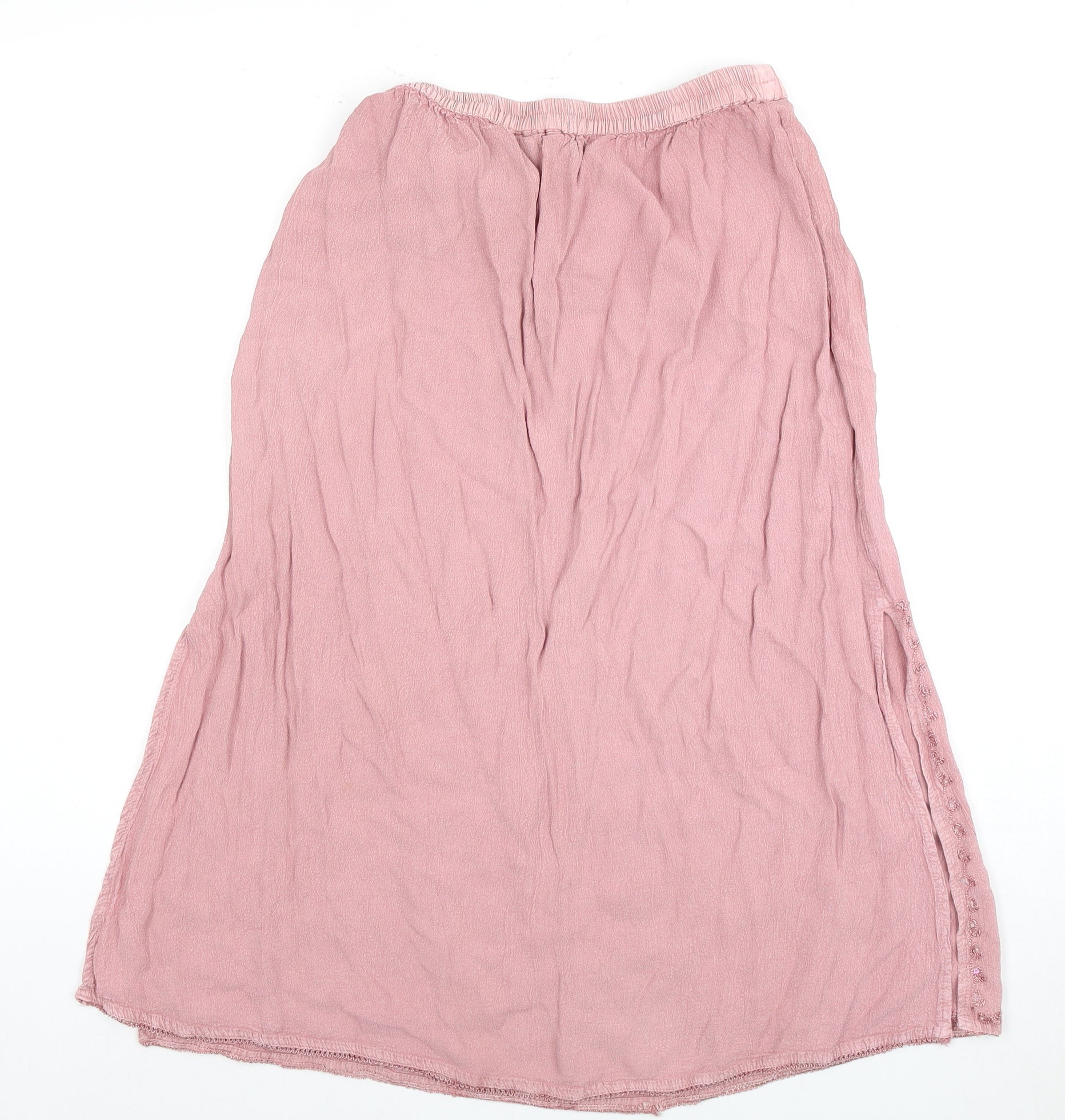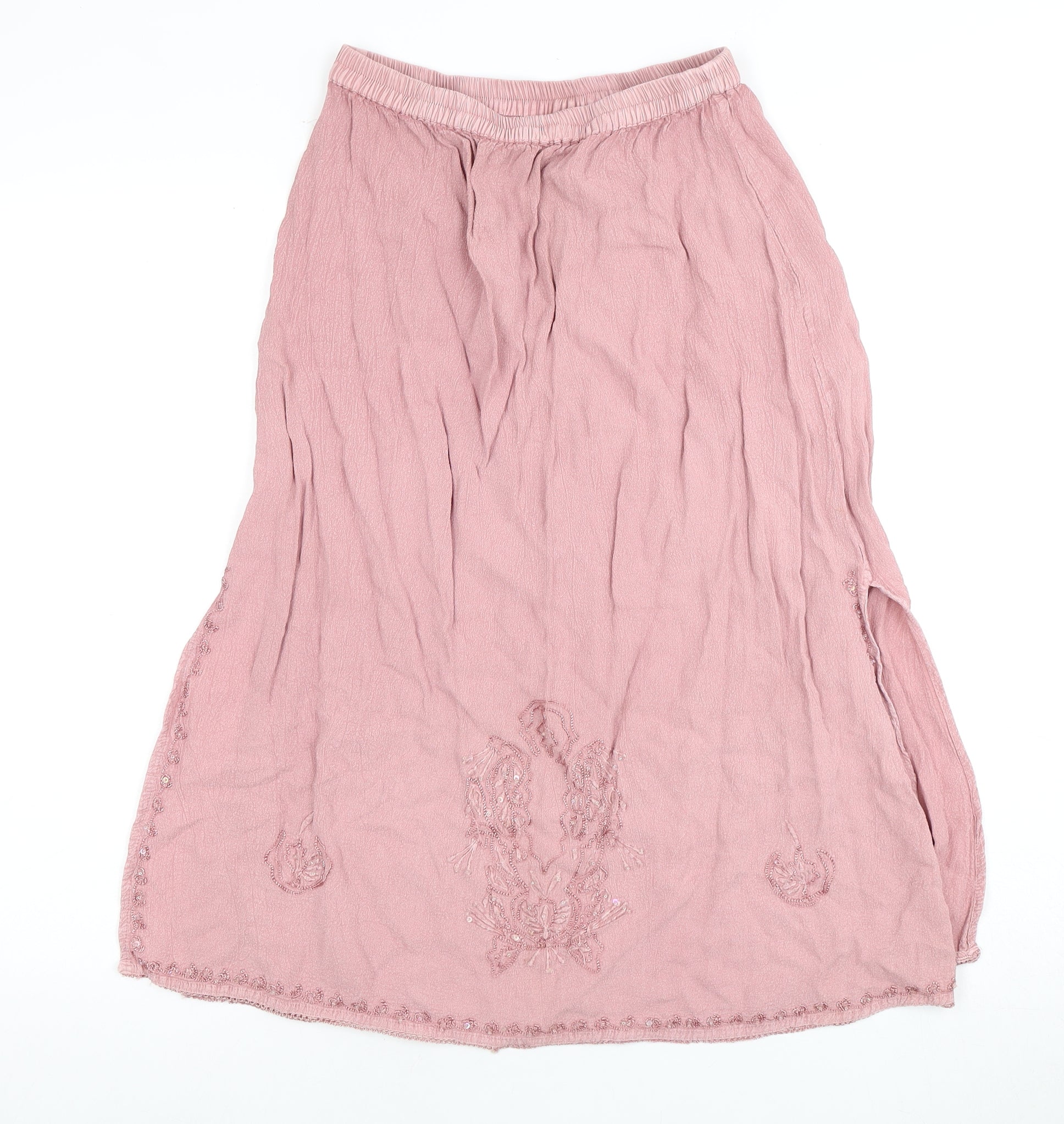 Enhance your wardrobe with this charming pink peasant skirt from SOOS, perfect for a casual outing or a day of relaxed elegance. Crafted from soft viscose, this women’s skirt delivers a lightweight and comfortable feel, ideal for spring and summer wear. The elastic waist adds a touch of convenience and style, allowing for a comfortable, tailored fit. Adorned with delicate embroidery, this skirt offers a subtle yet delightful embellishment, making it a standout piece. Suitable for various occasions, its mid-length design is versatile for any casual gathering. Despite minor signs of wear, the skirt remains in excellent condition, offering you a reliable choice for your fashion needs. Its simple yet elegant design, coupled with the charming pink hue, makes this skirt easy to pair with any top for a quick and polished look. Priced attractively for such a versatile addition to your collection, don’t miss the opportunity to own this beautiful skirt and step out in style.