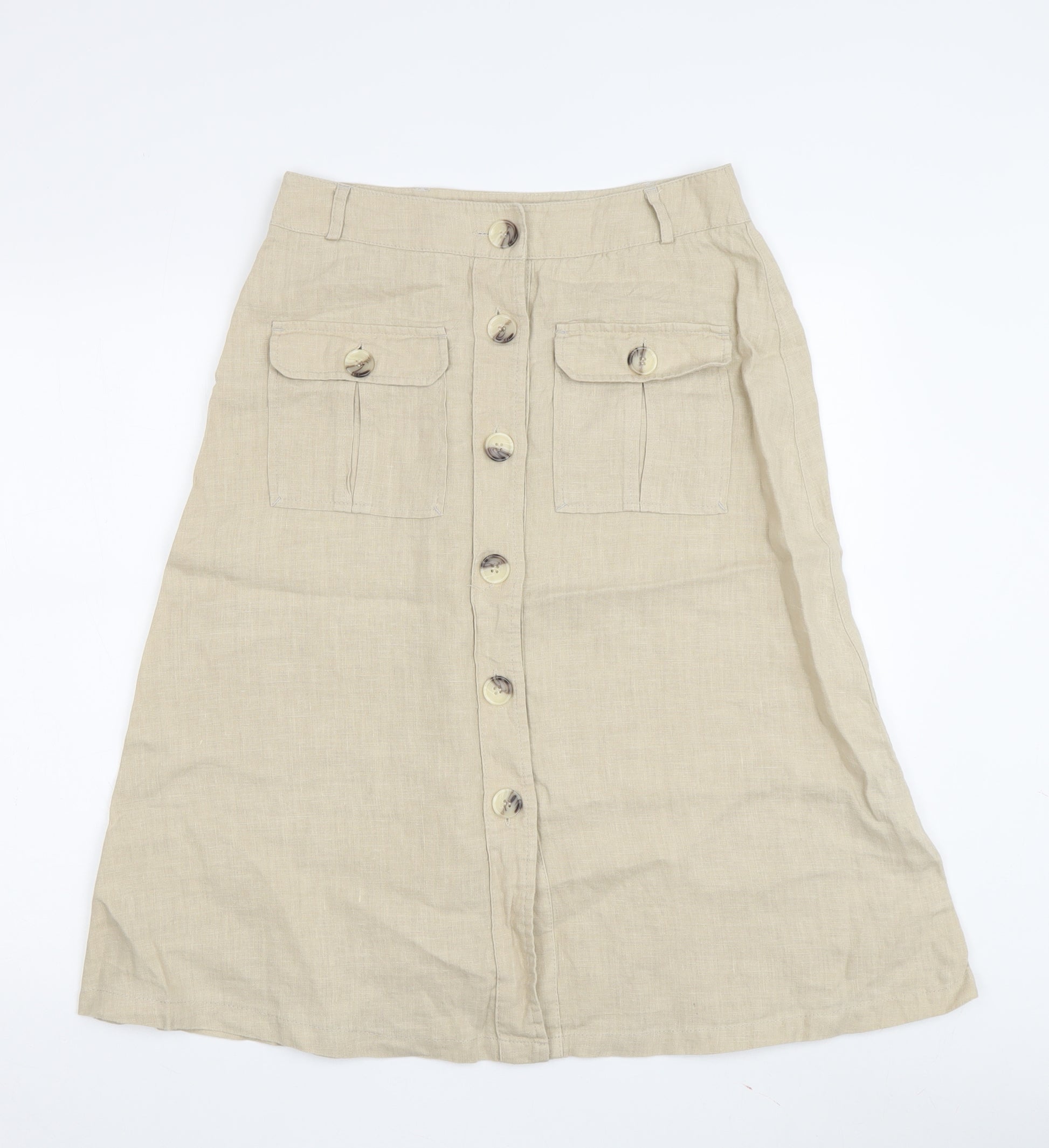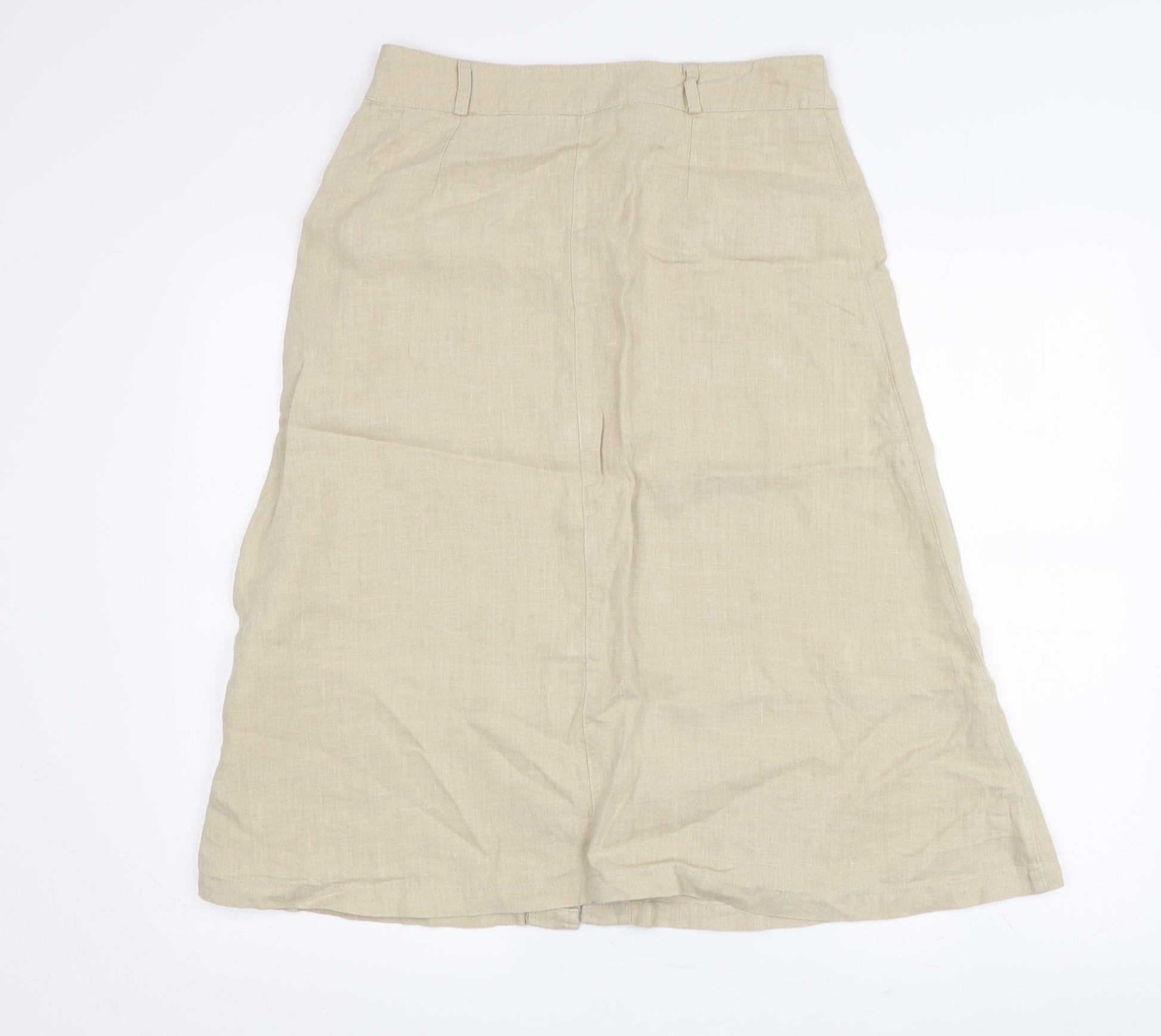 Women's Beige A-Line Midi Linen Skirt, Size 10