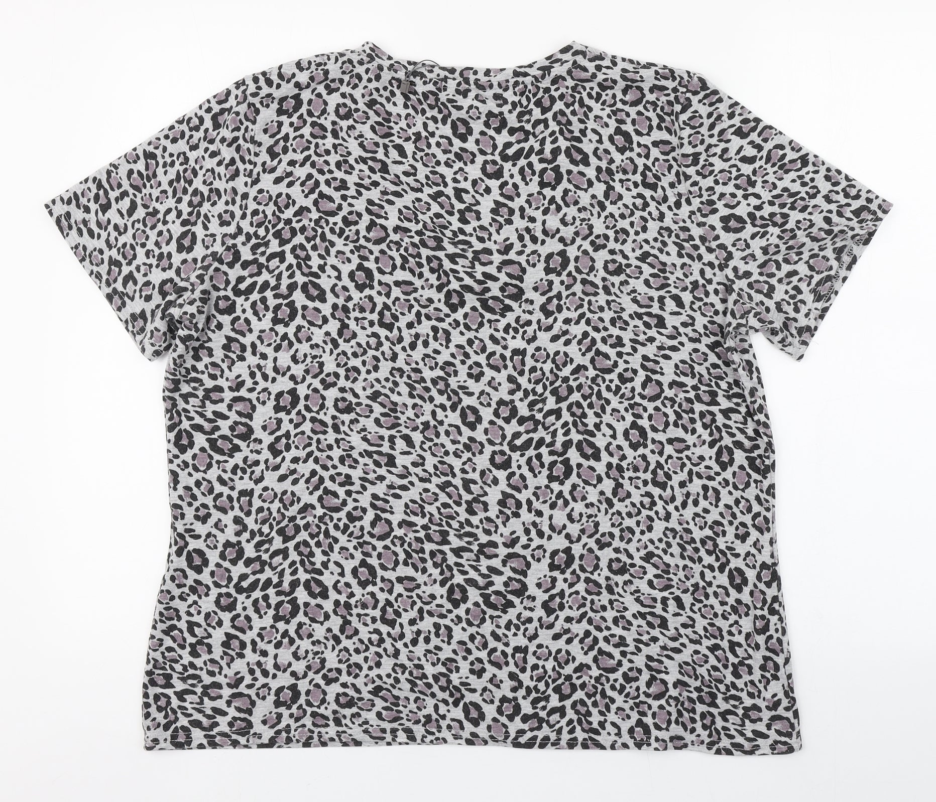 Womens Grey Animal Print Polyester Basic T-Shirt Size 16 V-Neck