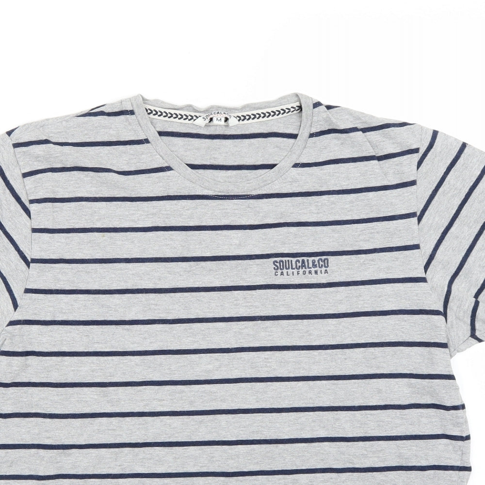Junk de Luxe Men's Grey Striped V-Neck Cotton T-Shirt Size M