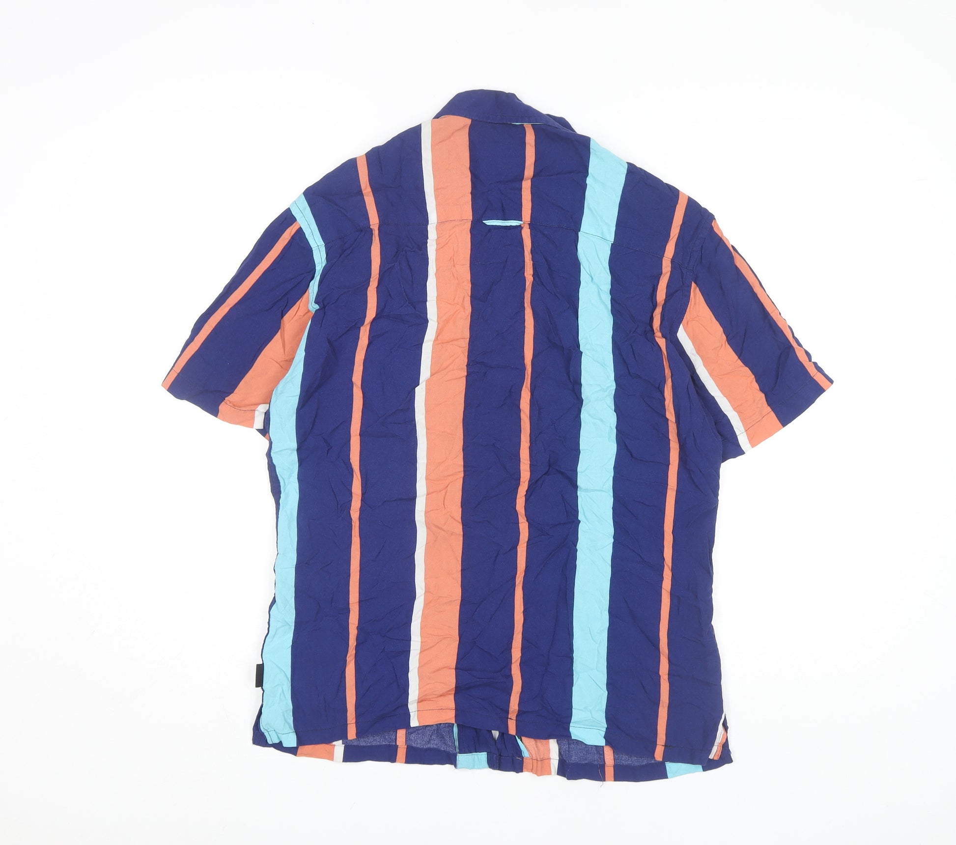 Discover effortless style with the Soul Star Men's Multicoloured Striped Shirt in size M. This striking men's button-up shirt is perfect for those who love a dash of colour in their wardrobe. Featuring a vibrant multicoloured striped pattern that is sure to turn heads, this shirt is crafted entirely from soft and breathable 100% viscose, ensuring comfort all day long. With short sleeves and a classic collared neckline, this shirt is ideal for casual occasions, whether you're out with friends or simply enjoying a day out. Its machine washable fabric makes it easy to care for, keeping it as vibrant as the day you bought it. Despite some wrinkling, which adds a casual charm, the shirt is in excellent condition, promising lasting durability and style. Grab this Soul Star shirt and make a bold statement in your everyday wear, blending comfort with standout fashion effortlessly.