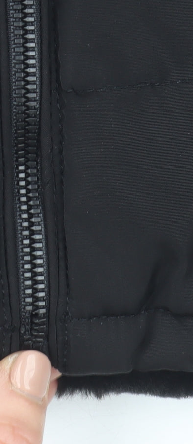 Boys Black Hooded Puffer Jacket 5-6 Years Faux Fur Trim Winter Coat
