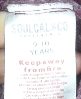 Keep your young adventurer cosy and stylish with this Boys SoulCal & Co burgundy pullover hoodie. Designed for comfort and durability, this hoodie is perfect for casual days, school wear or outdoor play. It features a soft cotton and polyester blend fabric, ensuring a breathable yet warm fit suitable for all seasons. The deep burgundy colour offers a classic, versatile touch, while the front kangaroo pocket adds both style and practicality, letting kids keep their hands warm or store small essentials. A round black and white SoulCal & Co logo patch on the chest gives it a laid-back California-inspired vibe, appealing to both parents and kids who appreciate quality and cool simplicity. The hood provides extra warmth during chilly weather, and the ribbed cuffs and hem maintain a snug fit, preventing drafts. Crafted for boys aged 9-10 years, this hoodie offers a regular fit that blends comfort with timeless style. The material balance of 59% cotton and 41% polyester gives it a soft texture and easy-care durability—machine washable for added convenience. Perfect for autumn or spring outings and layering through winter, it’s a reliable everyday piece. This pre-loved item is in excellent condition with no visible flaws, showing minimal signs of wear. Whether paired with jeans or joggers, it’s a wardrobe essential that combines casual charm with practical comfort. Get it now for a great value and bring home a trusted brand that’s loved for its relaxed California spirit.