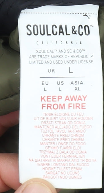Elevate your winter wardrobe with this sleek black puffer jacket from SoulCal & Co. Designed for men, this jacket combines style and comfort, making it an ideal choice for chilly autumn and winter days. The jacket features a cosy hood and a full zip closure, ensuring you stay warm and protected against the elements. Made from durable polyester, it offers reliable insulation, perfect for outdoor activities or casual outings.With its timeless black colour and regular fit, this puffer jacket complements any outfit, whether you're heading to work or enjoying a weekend adventure. The stand-up collar adds a touch of elegance, while the zipped pockets provide convenient storage for your essentials. Plus, it's machine washable, making it easy to care for.Crafted to keep you comfortable, this jacket is brand new with tags, ensuring you receive it in pristine condition. The innovative design incorporates a synthetic insulation material that efficiently retains heat, allowing you to brave cold temperatures with confidence. Don't miss out on this essential addition to your cold-weather collection— it’s the perfect blend of functionality and style, at an unbeatable price of £35.00.