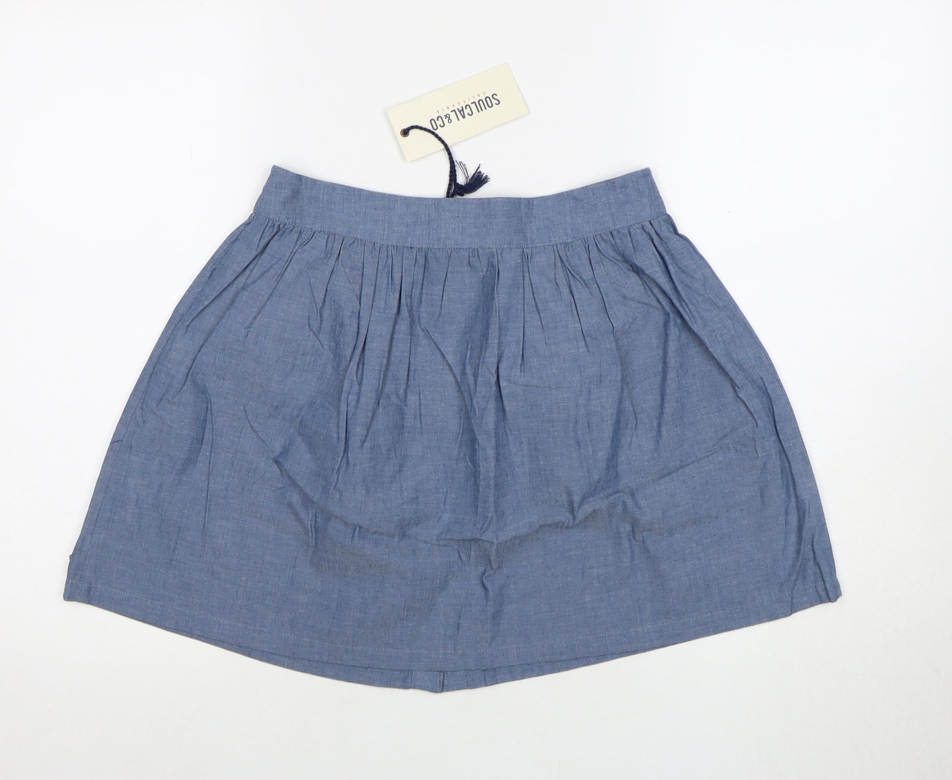 Step into effortless style with this charming blue skirt from SoulCal & Co, crafted specifically for women who appreciate comfort and elegance. Made from 100% cotton, this chambray skirt offers a soft and breathable touch, perfect for those warm spring and summer days. Featuring a casual yet stylish look, the skirt showcases practical button accents and two pockets for added convenience. The classic blue hue makes it versatile, allowing easy pairing with various tops in your wardrobe. Despite being new with tags, this skirt exudes a laid-back, no-pattern design suitable for any casual occasion. Elevate your spring and summer outfits with this simple yet fashionable skirt.
