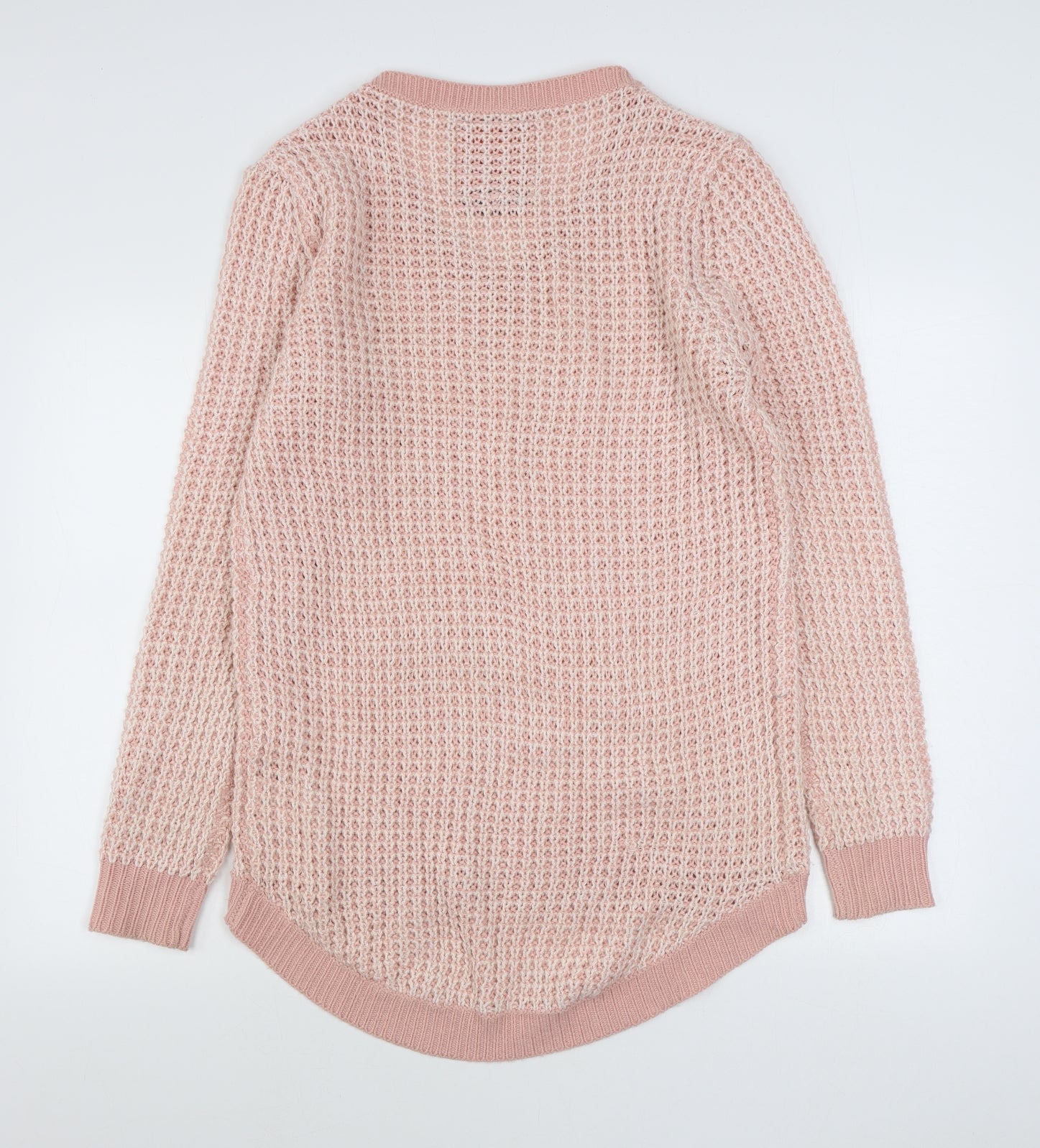 Womens Pink V-Neck Acrylic Pullover Jumper Size 14