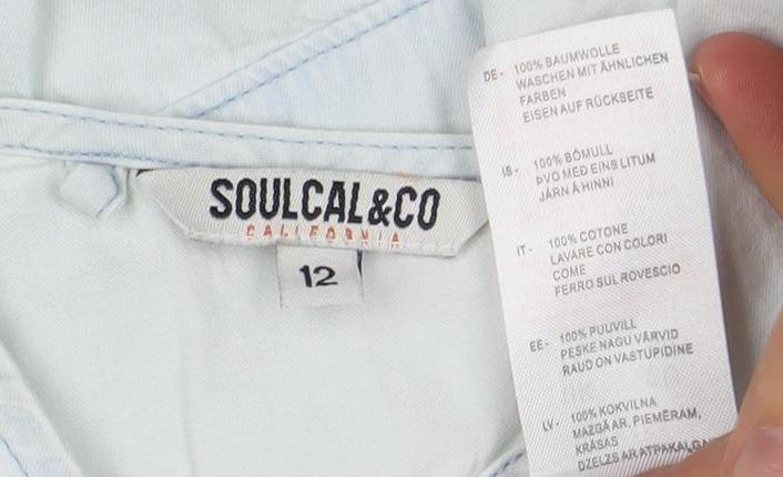 Step out in style with this charming SoulCalCo Women's Fit & Flare Dress, perfect for infusing your wardrobe with a touch of summertime elegance. Tailored in a soft blue hue, this sleeveless dress highlights your figure with its flattering fit and flare design. Made from pure cotton, it offers comfort and breathability, making it ideal for warm weather outings. The scoop neckline and open back add a playful yet sophisticated touch, while the button closure ensures a secure fit. Whether you're brunching with friends or enjoying a day at the beach, this dress is a versatile addition that suits every casual occasion. In an excellent used condition, it shows only light signs of wear. Embrace effortless style and add a sunny disposition to your ensemble with this beautiful dress. Available in a UK size 12.