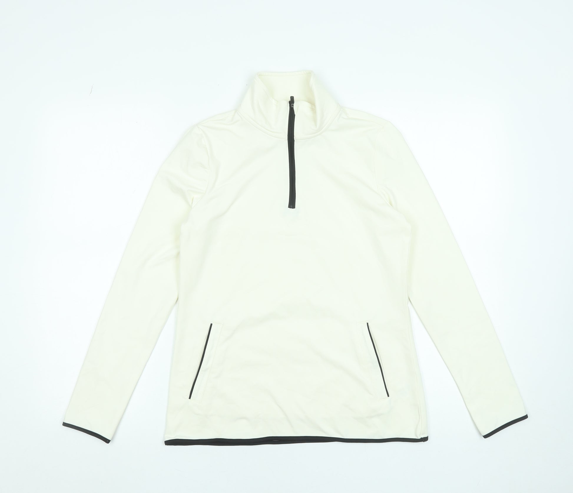 Women Ivory High Neck 1/4 Zip Long Sleeve Activewear Top S