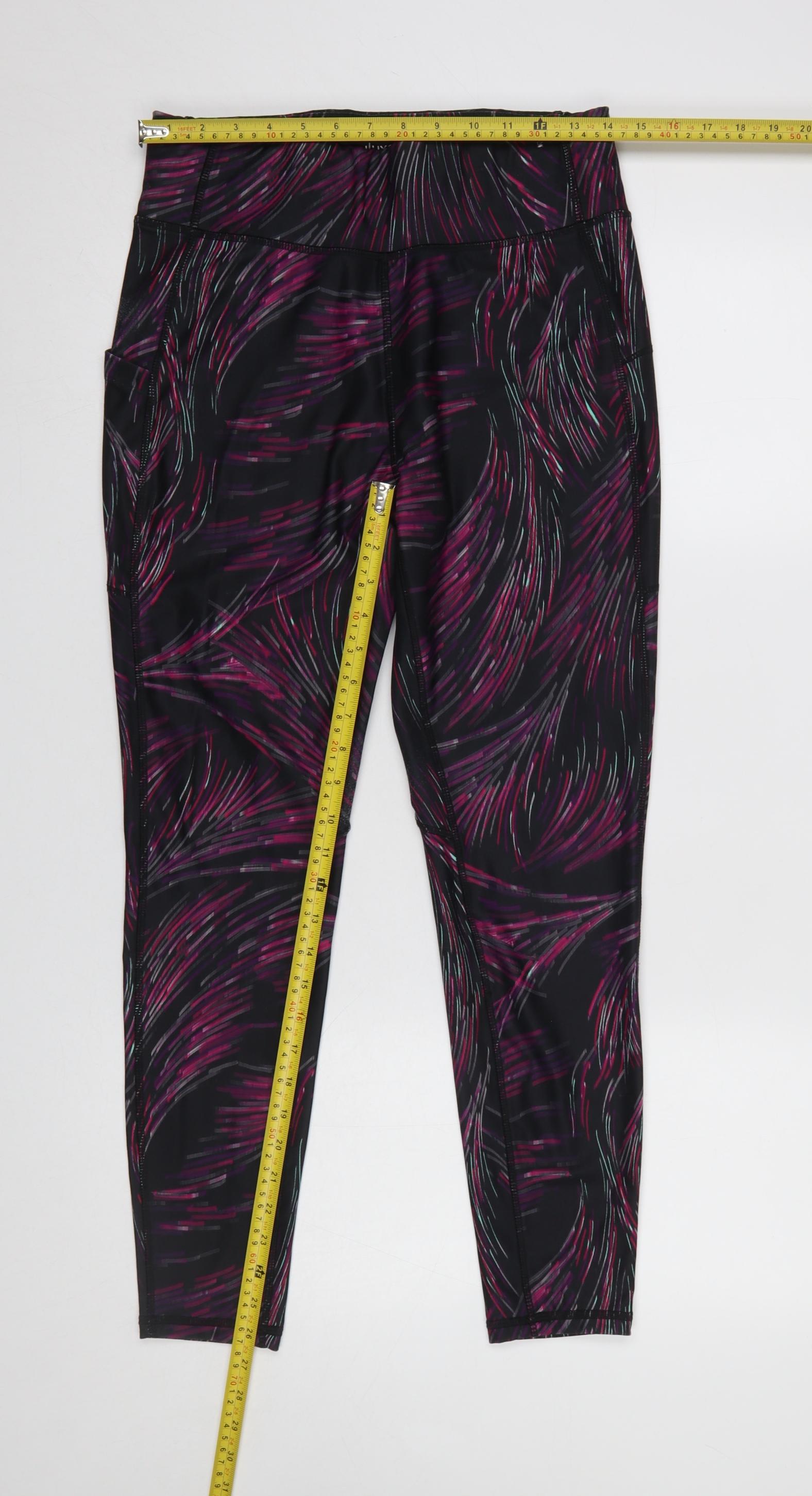 Womens Black Purple Patterned Leggings Size 12