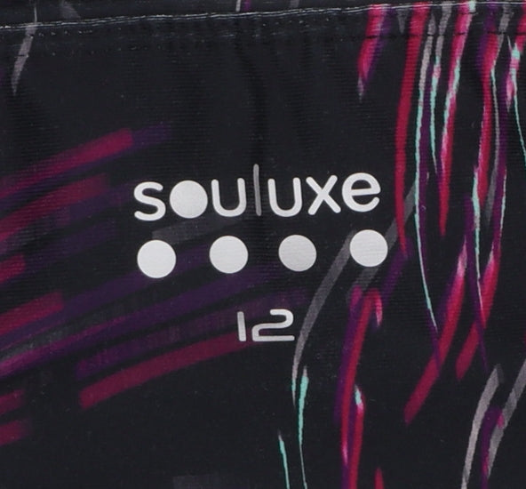 These Souluxe women’s leggings blend comfort, performance, and modern design to perfection. Crafted from a breathable and stretchy polyester-elastane blend, they provide a supportive yet flexible fit ideal for workouts, yoga sessions, running, or simply everyday wear. The multicoloured abstract pattern in shades of purple, pink, and black adds a bold and vibrant look, making these leggings stand out whether you are at the gym or on the go. With a comfortable elastic waistband and moisture-wicking, quick-dry fabric, they help keep you cool and dry during active sessions. The lightweight yet durable material ensures freedom of movement, enhancing both comfort and confidence. Designed for the modern active woman, these leggings offer a snug slim fit through the legs, creating a flattering silhouette while still allowing full mobility. Suitable for all seasons, they work well paired with a T-shirt, sports bra, or hoodie for a relaxed and stylish athleisure look. In excellent condition with no visible wear or damage, they are a great choice for anyone seeking quality activewear at an affordable price. Ideal for gym training, yoga, running, or outdoor activities, these Souluxe leggings bring functional design together with eye-catching style. A wardrobe essential for women who value both performance and fashion, these versatile leggings are perfect for transitioning from workout sessions to casual days out without missing a beat. Add these smart, comfortable leggings to your activewear collection today and enjoy reliable stretch and style for every movement.
