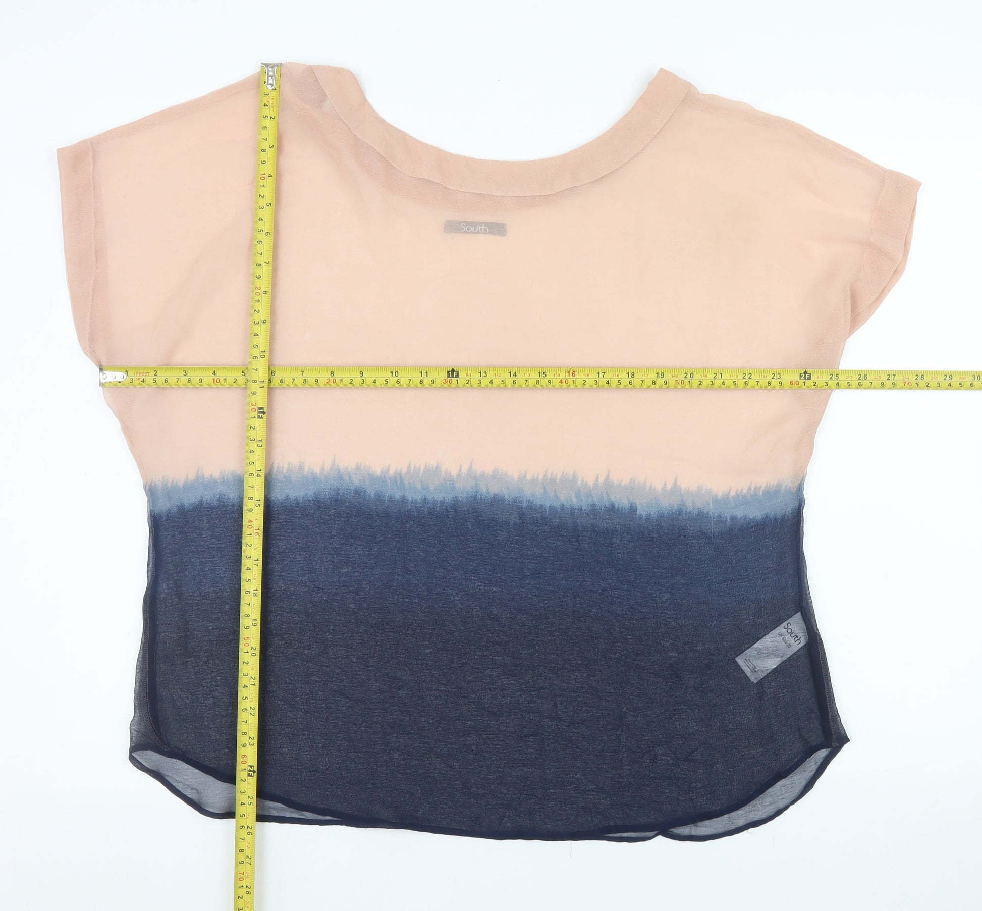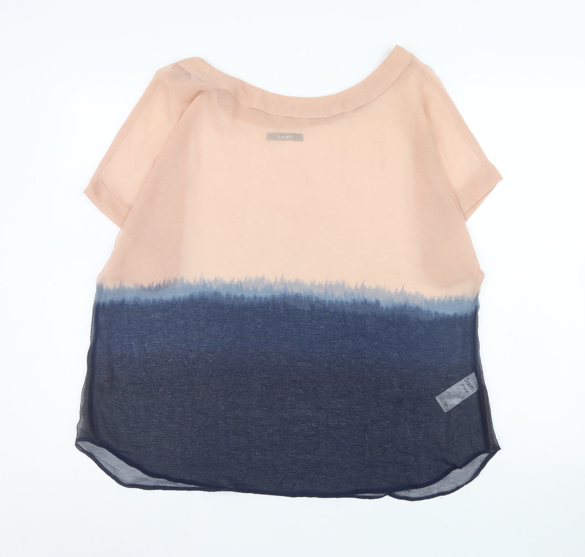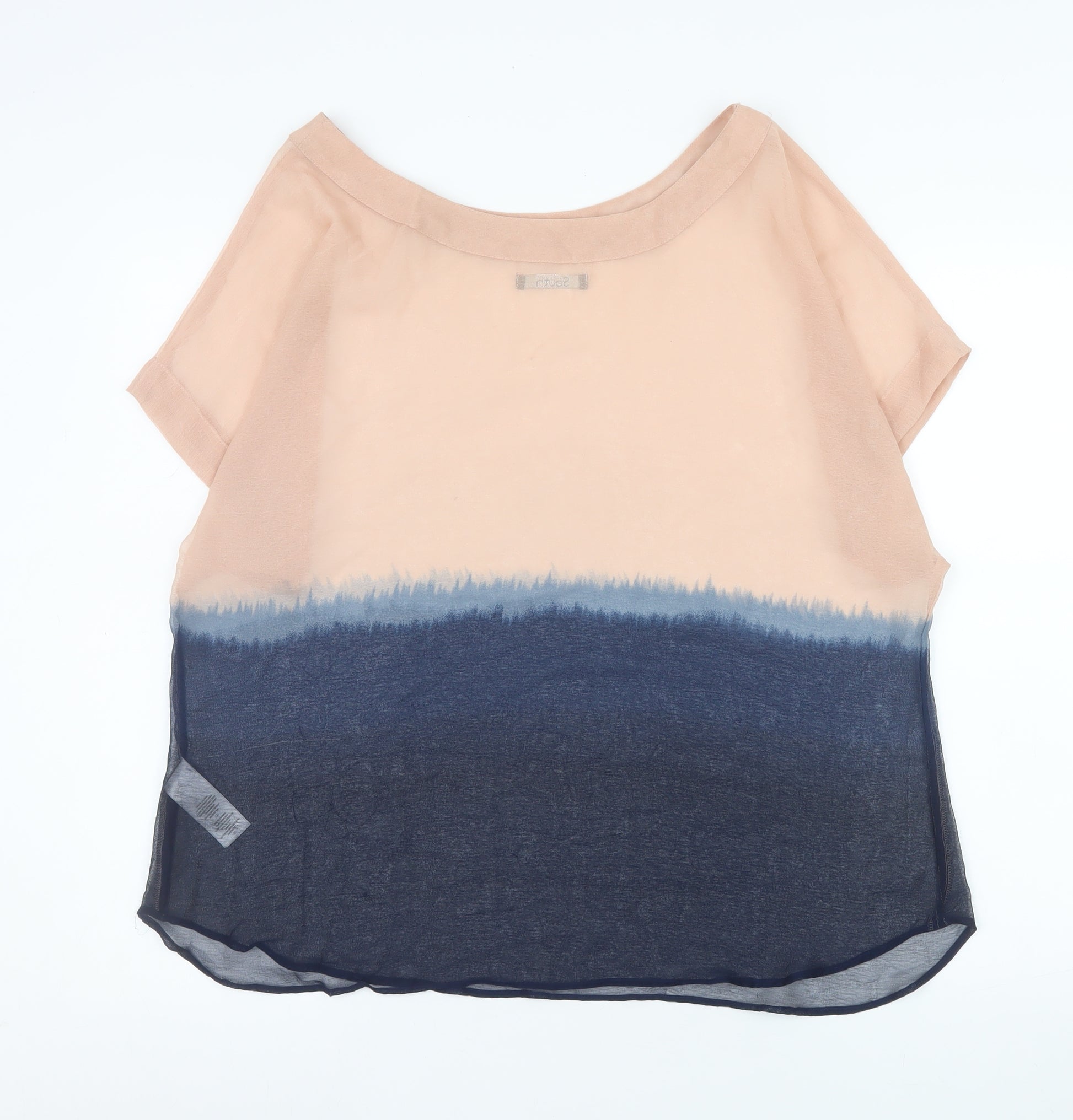 Refresh your wardrobe with this elegant South Women’s Tunic Blouse in UK Size 20. Crafted entirely from soft, breathable 100% polyester chiffon, this lightweight and relaxed-fit blouse offers a comfortable yet polished look suitable for both casual and semi-formal occasions. The design features a stylish colour-fade effect, shifting seamlessly from a warm beige tone to a deep navy blue. This unique colourblock gradient creates a contemporary yet versatile feel, perfect for pairing with jeans, trousers, or a sleek skirt. The short cap sleeves and airy fabric make it an ideal piece for spring and summer wear, providing effortless comfort while maintaining a refined silhouette. The boat neckline flatters the shoulders and neckline for a feminine, modern appeal. Designed for easy care, the blouse is machine washable and retains its soft, flowing texture wear after wear. Whether for workdays, weekend outings, or relaxed evenings out, it’s a simple yet refined choice that complements multiple styles. Its lightweight fabric drapes beautifully, ensuring ease of movement and breathability in warmer weather. The South brand combines comfort and fashion-forward detail, making this blouse an excellent addition to any wardrobe. With its flattering fit, subtle sheerness, and stylish gradient tones, it brings a touch of effortless sophistication. Perfect for women who appreciate simple yet chic pieces, this tunic blouse can easily transition from day to evening wear. Conditioned in excellent used state, clean and well-maintained, it offers great value and timeless style. Treat yourself to this versatile, beautifully designed blouse that elevates your everyday dressing with ease and elegance.