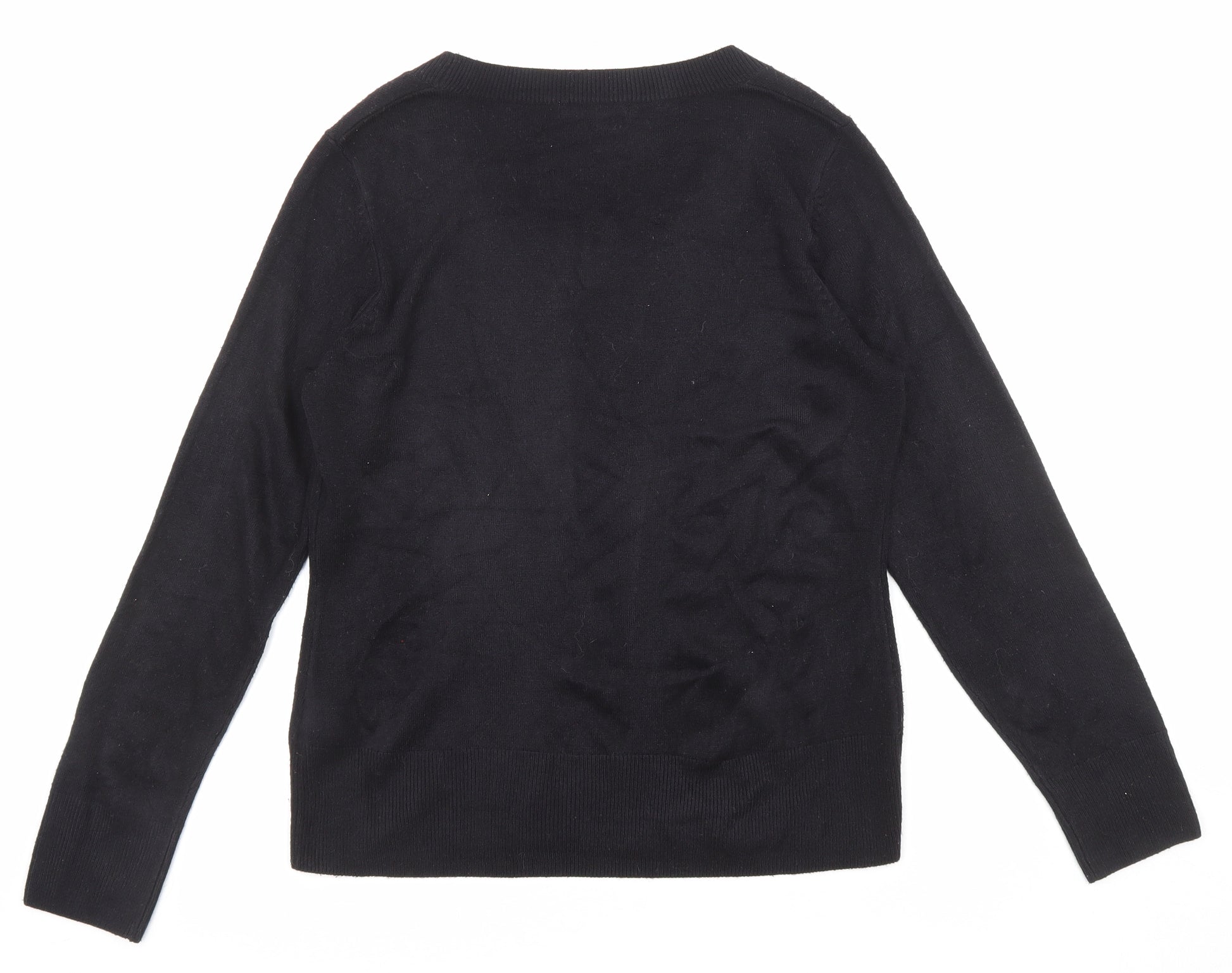 Womens Black Scoop Neck Acrylic Pullover Jumper Size 12
