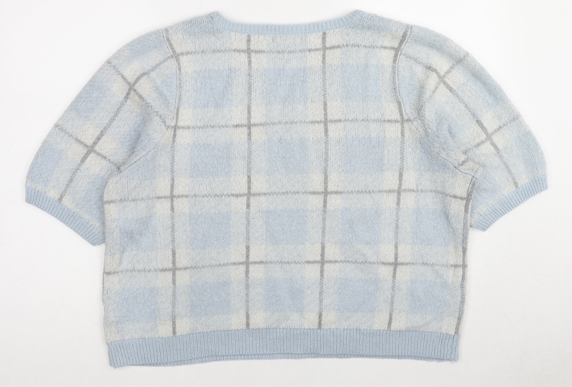 Womens Blue Crew Neck Plaid Acrylic Pullover Jumper Size 2XS