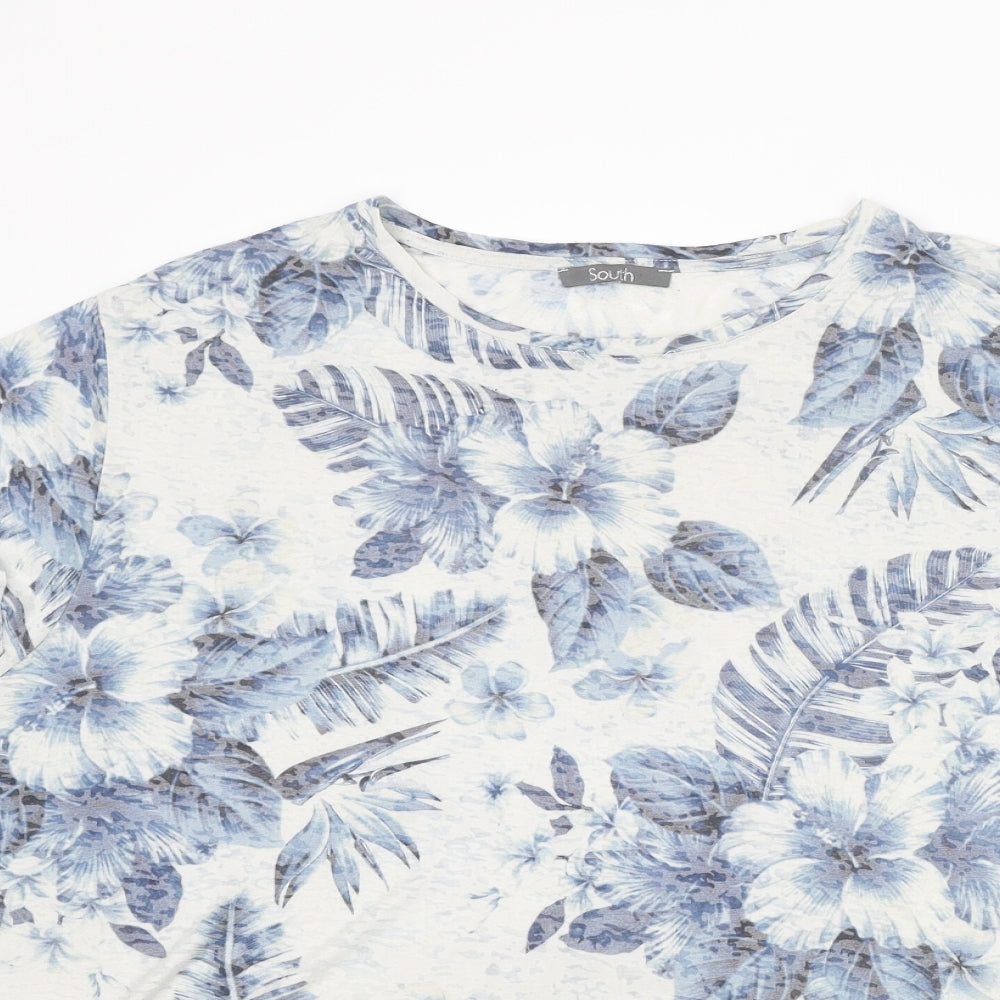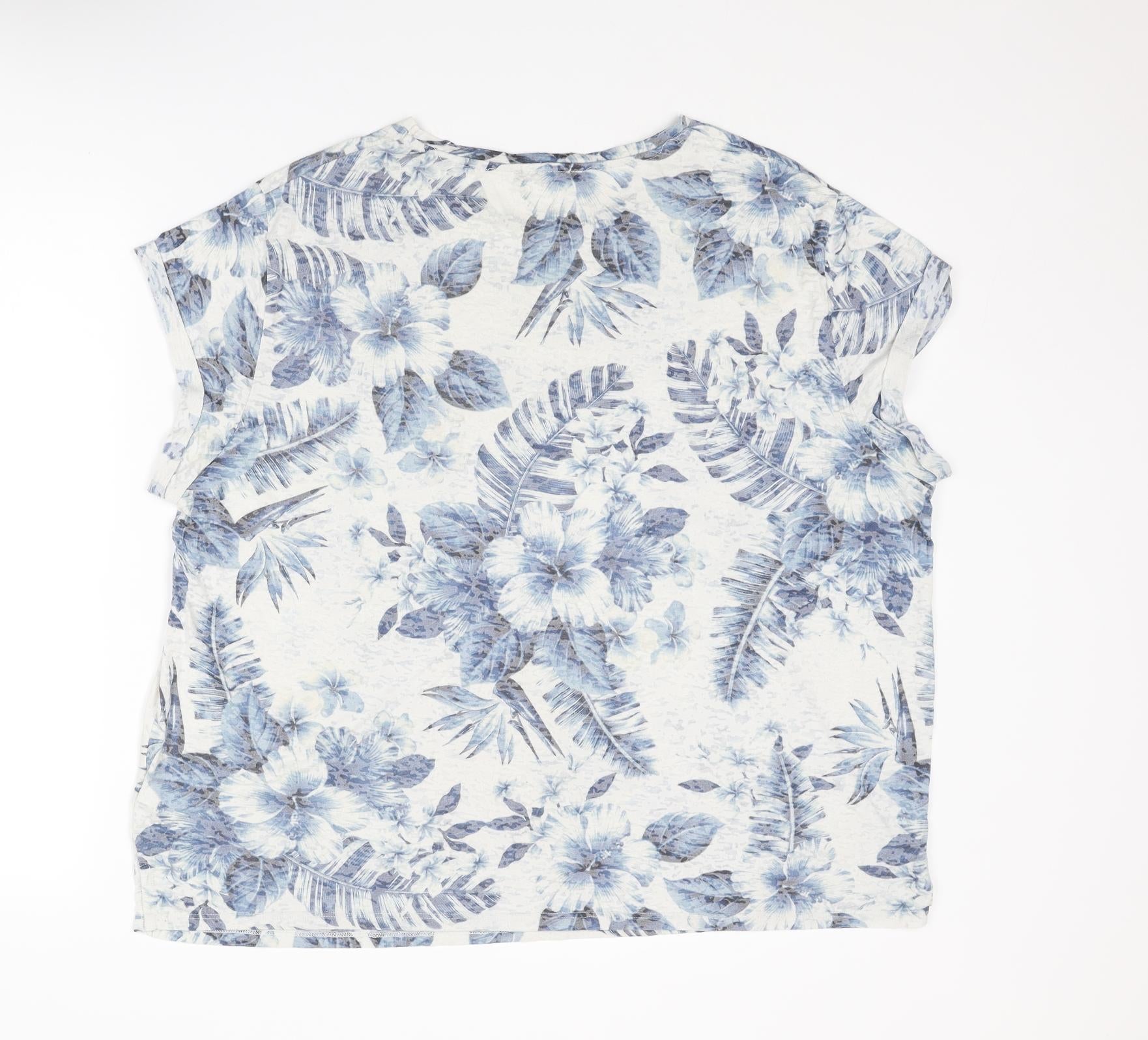 Womens Blue Floral Polyester Basic T-Shirt Size 24 Round Neck