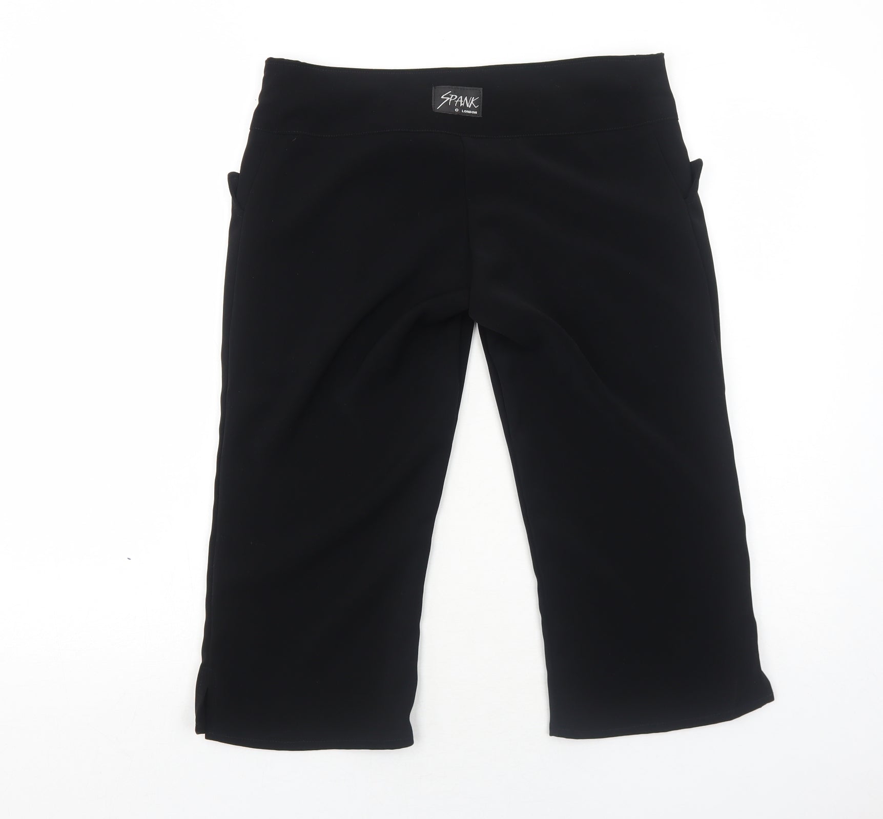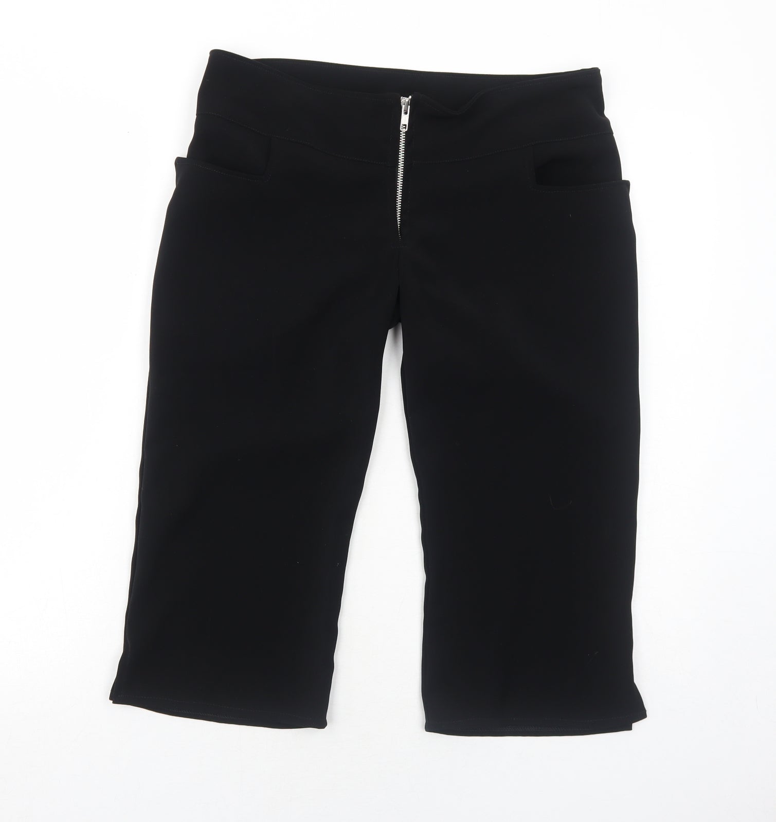 Womens Black Polyester Cropped Trousers Size M Regular Zip