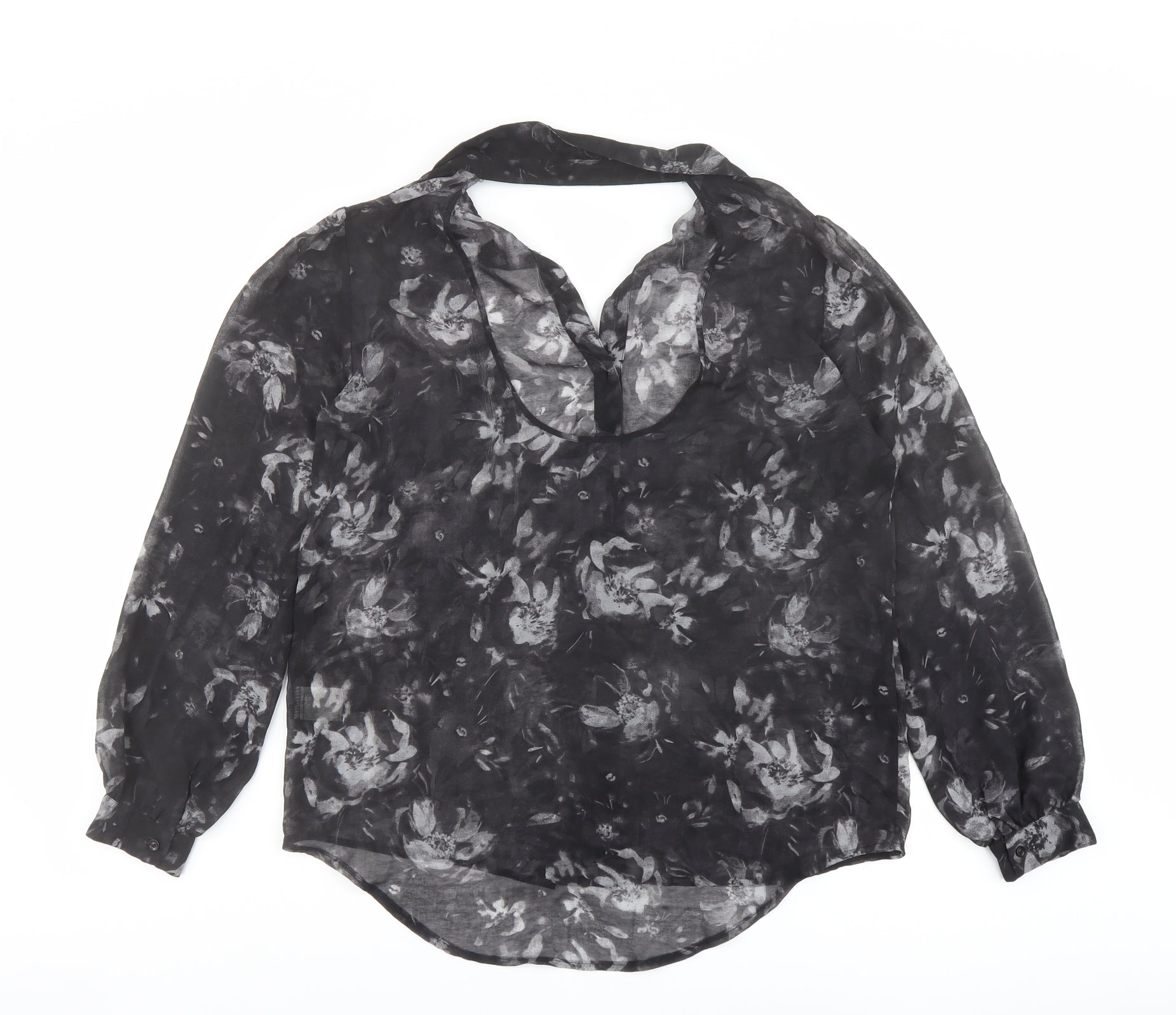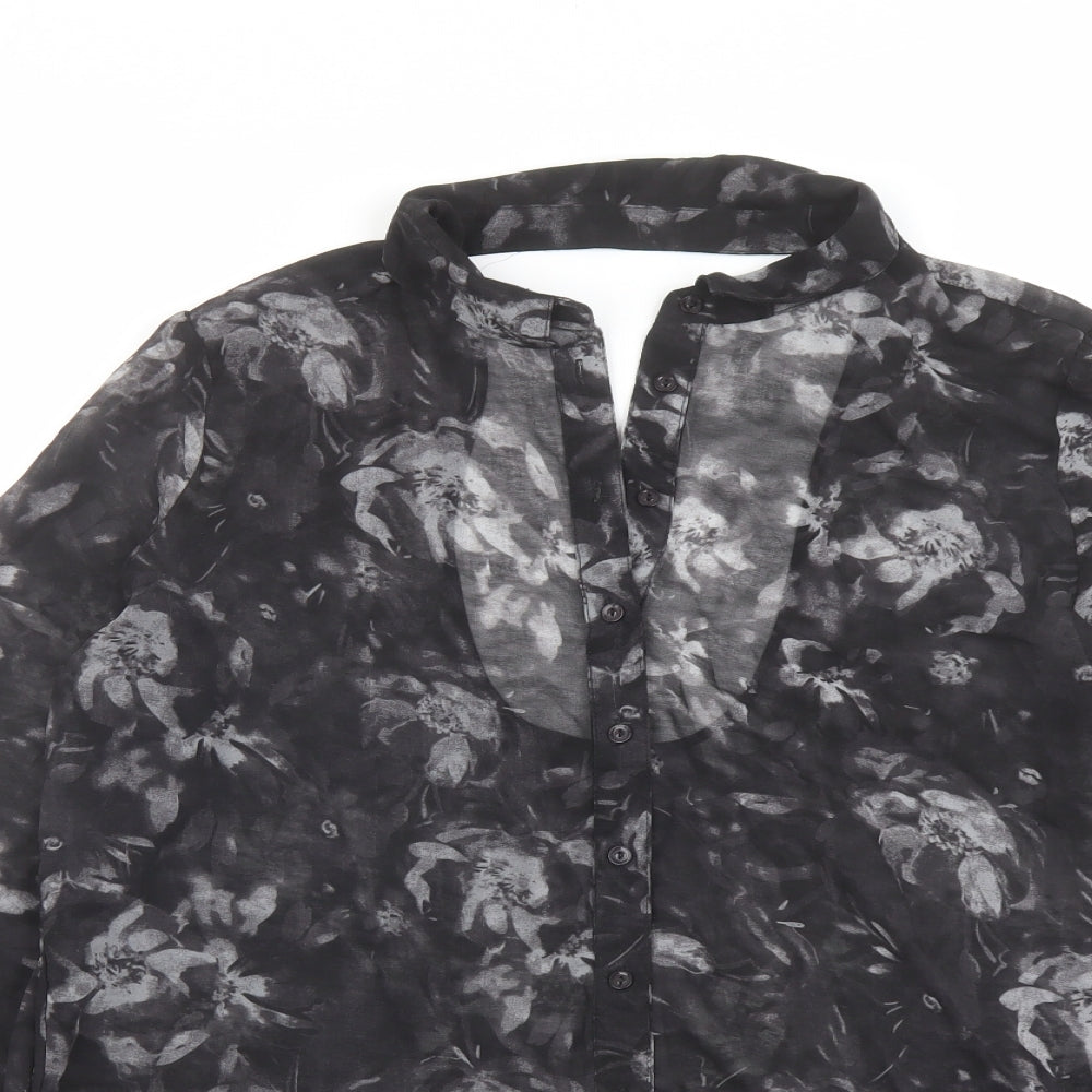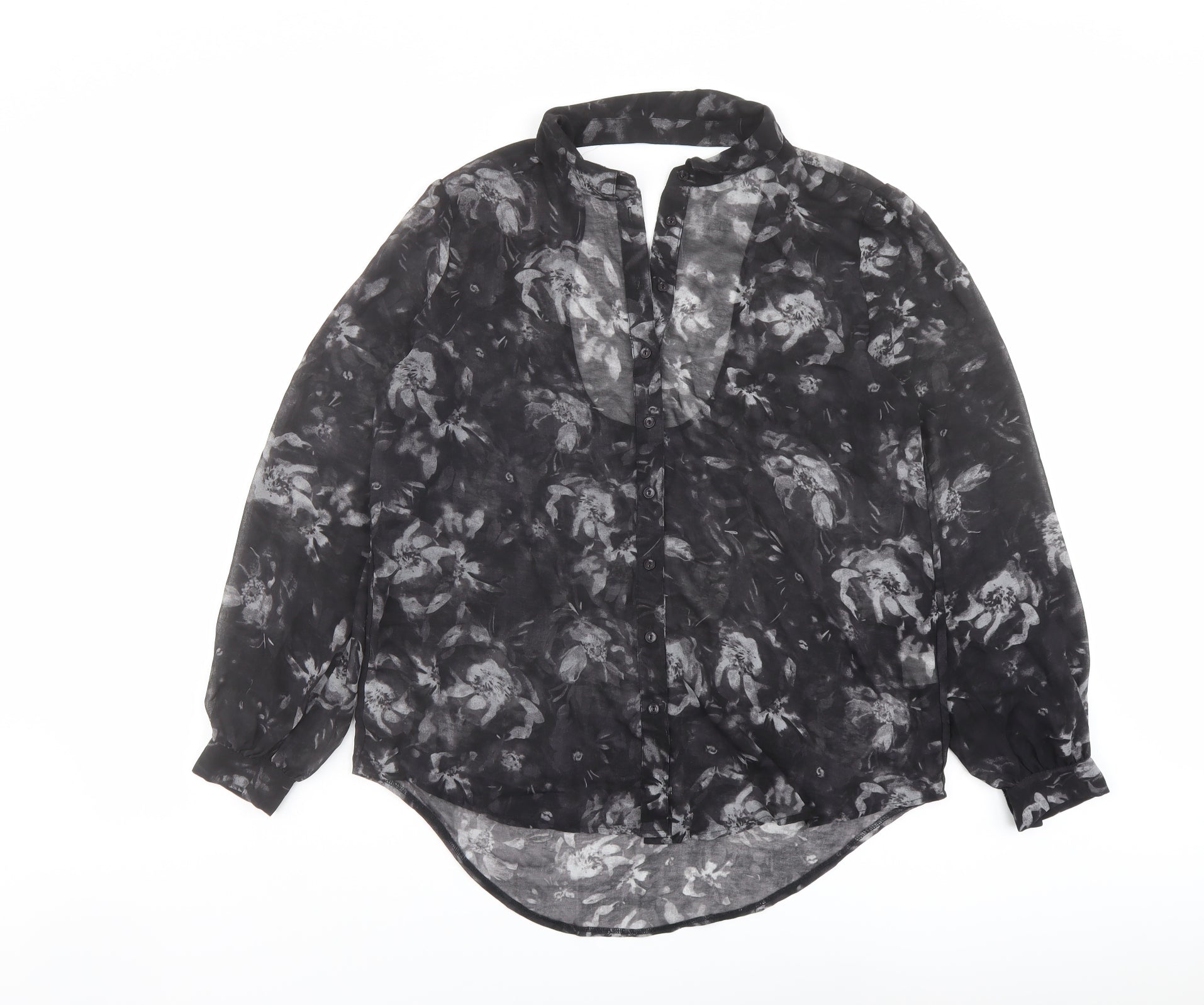 Womens Black Geometric Polyester Basic Button-Up Size M Collared - Cut Out Detail