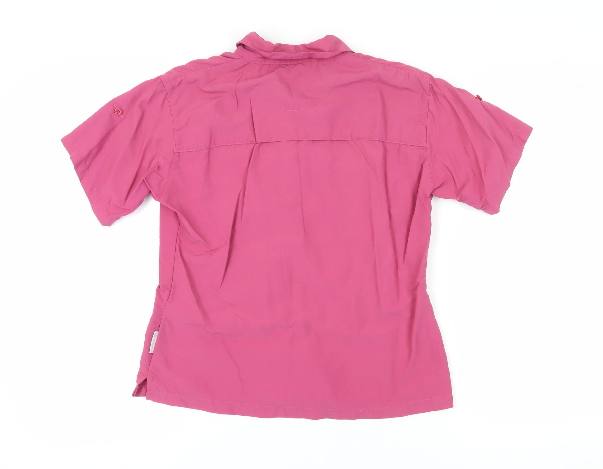Brighten up your wardrobe with this charming pink Sprayway button-up shirt, perfect for any casual outing. Designed specifically for women, the shirt comes in a regular size 12, offering a comfortable and flattering fit. The short sleeves and collared neckline give it a classic button-up style, making it a versatile choice for a variety of occasions. Made from 100% polyamide, this shirt is both lightweight and durable, providing all-day comfort while being machine washable for easy care. Its button closure ensures a secure fit, and the vibrant pink solid pattern adds a pop of colour to any look. Despite minor wear, the shirt remains in excellent condition, ensuring continued enjoyment. This shirt is an ideal option for everyday wear, ensuring you look stylish without compromising on comfort. Whether you're heading out for a casual lunch, running errands, or simply relaxing at home, this Sprayway shirt complements any outfit. Update your casual collection with this vibrant piece and enjoy the effortlessly chic style it brings to your wardrobe.
