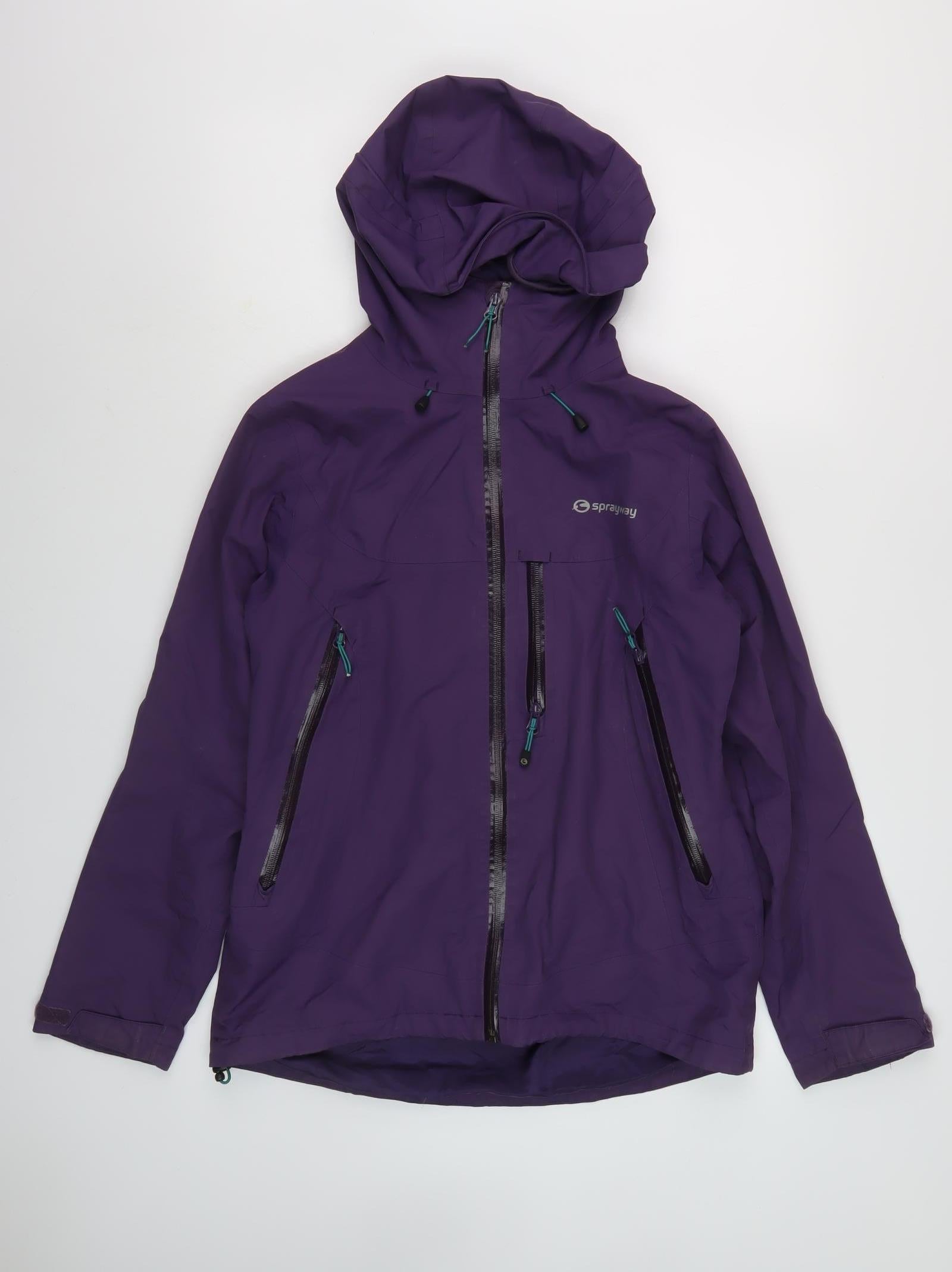 Get ready for any adventure with the Sprayway women's waterproof jacket. Designed in a vibrant purple, this stylish and practical jacket combines functionality with a modern aesthetic to enhance your outdoor wardrobe. The jacket features a full zip closure for easy wearing and removal, designed to keep you warm and comfortable. Perfect for spring and autumn outings, it's equipped with several functional features that make it a versatile piece for any weather condition. With its hooded design, it offers additional protection against unexpected showers, making it a reliable companion for outdoor activities or casual encounters. Its mid-length cut ensures a flattering fit, while the long sleeves provide full coverage. This jacket is enhanced with practical zipped pockets to keep your essentials secure and within reach. Made from high-quality polyamide fabric, the coat promises durability and easy maintenance, being machine washable. Its excellent condition means it shows no visible damage, ensuring you can enjoy it for many seasons to come. Whether you're hiking, camping, or just heading out for a casual stroll, this jacket is an ideal choice for fashion lovers who appreciate both style and practicality.