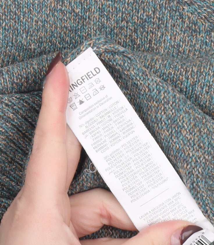 This Springfield Men’s Green Cotton Blend Crew Neck Jumper in size XL offers a stylish and easy-going look perfect for the cooler seasons. Crafted from a soft combination of 70% cotton and 30% polyester, the knit fabric provides a comfortable feel and retains its shape while remaining breathable and lightweight. Ideal for layering or wearing on its own, this jumper brings comfort and practicality into your wardrobe. The classic crew neckline and ribbed cuffs and hem create a flattering fit and timeless appearance suitable for any casual outing or semi-smart occasion. Its subtle melange design in muted green tones, coupled with the embroidered Springfield logo on the chest, gives it a refined yet relaxed aesthetic. Designed for men who appreciate both style and comfort, this jumper embodies quality craftsmanship and effortless versatility. Whether paired with jeans for a laid-back weekend look or layered under a blazer for a more polished style, it transitions easily through autumn, winter, and early spring. With its breathable, durable construction, it promises excellent wearability season after season. In excellent condition with no visible flaws, this jumper has been gently used and carefully inspected to ensure a high standard of quality. Perfect for daily wear, travel, or casual gatherings, it’s a dependable piece that complements any smart-casual wardrobe. Machine washable for easy care and built to last, this Springfield jumper represents understated style and value — a staple investment for any modern man’s wardrobe.