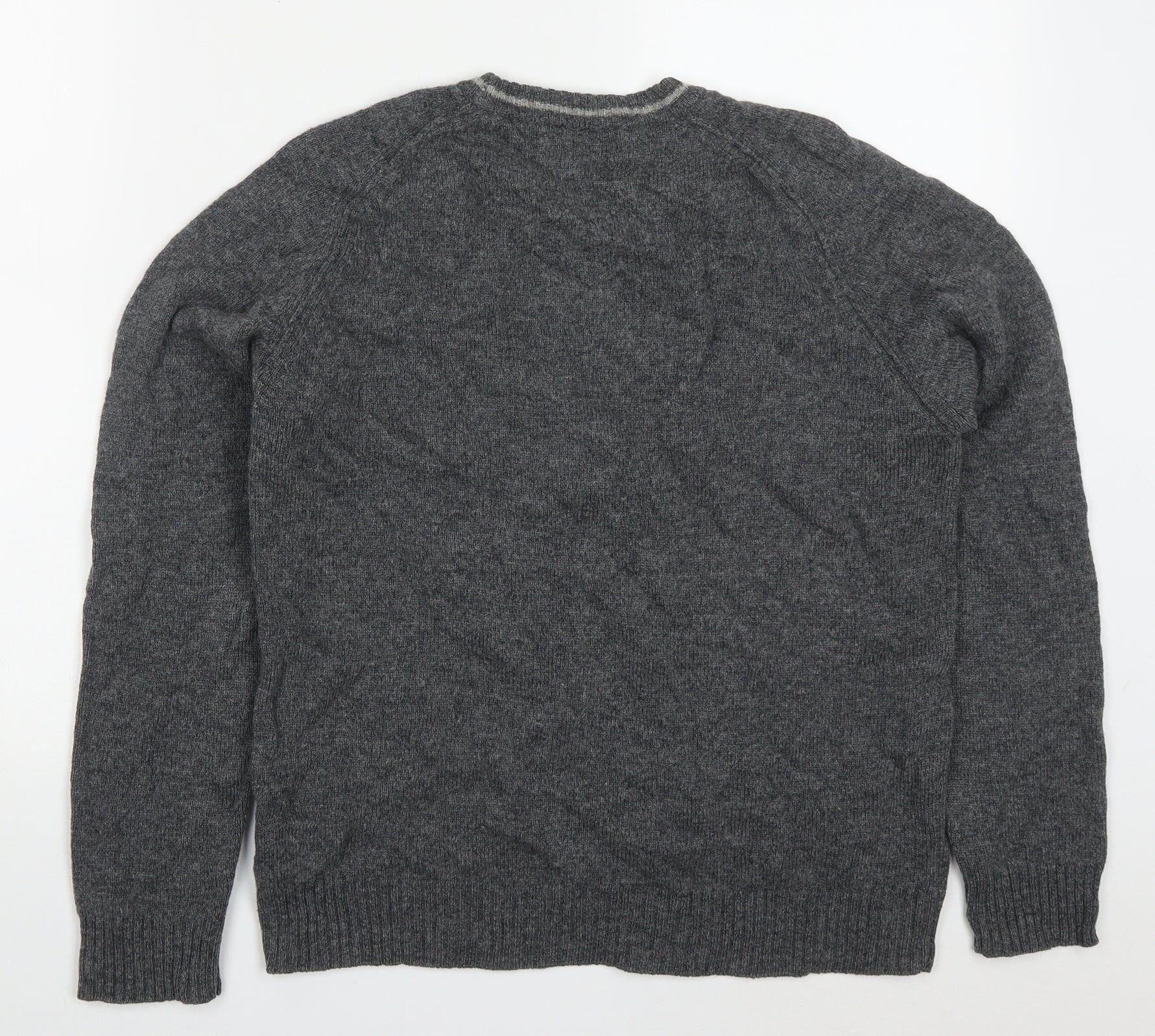 Mens Grey Round Neck Wool Pullover Jumper Size S