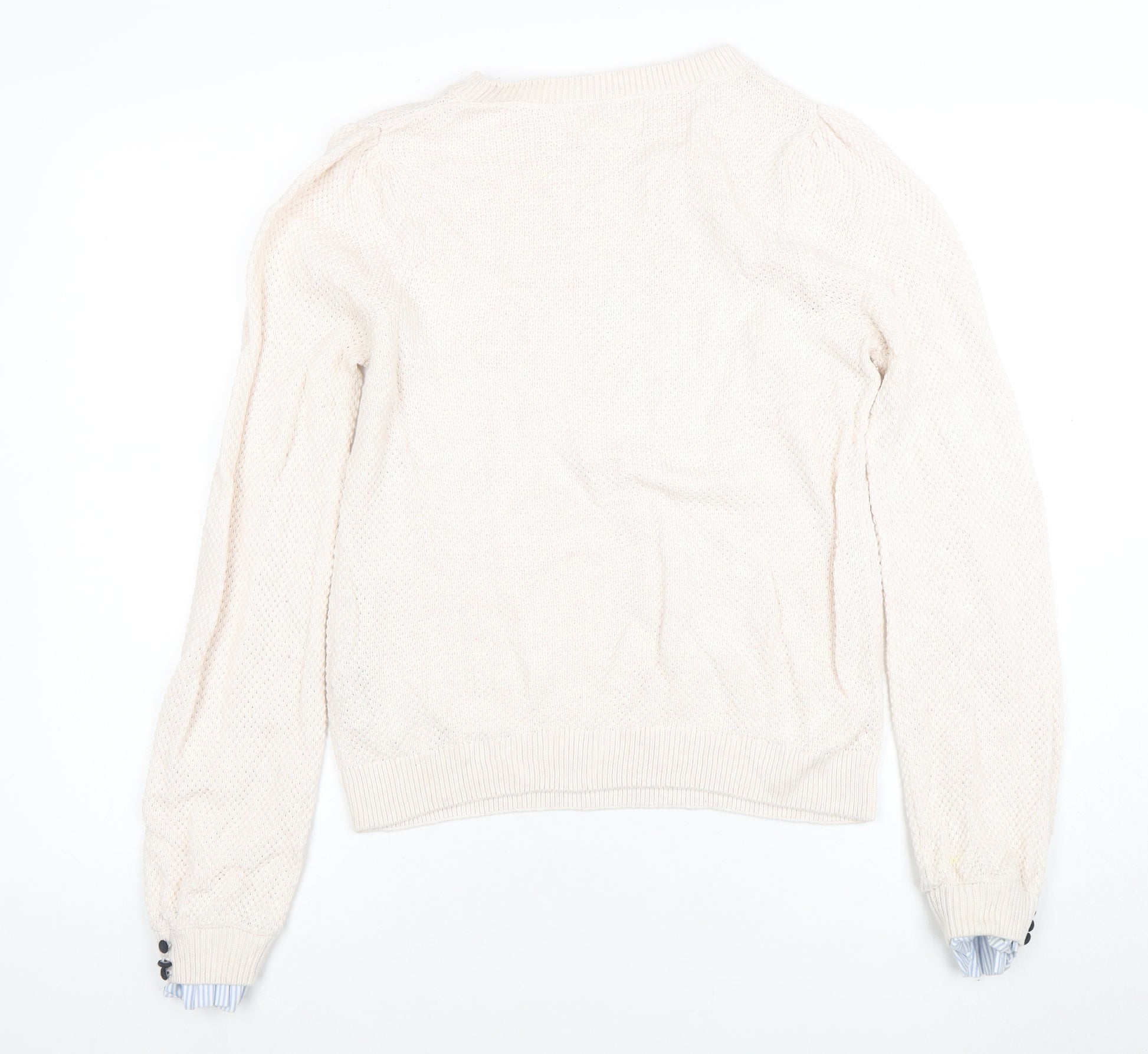 Women Beige Knit Crew Neck Pullover Jumper M