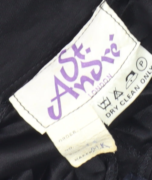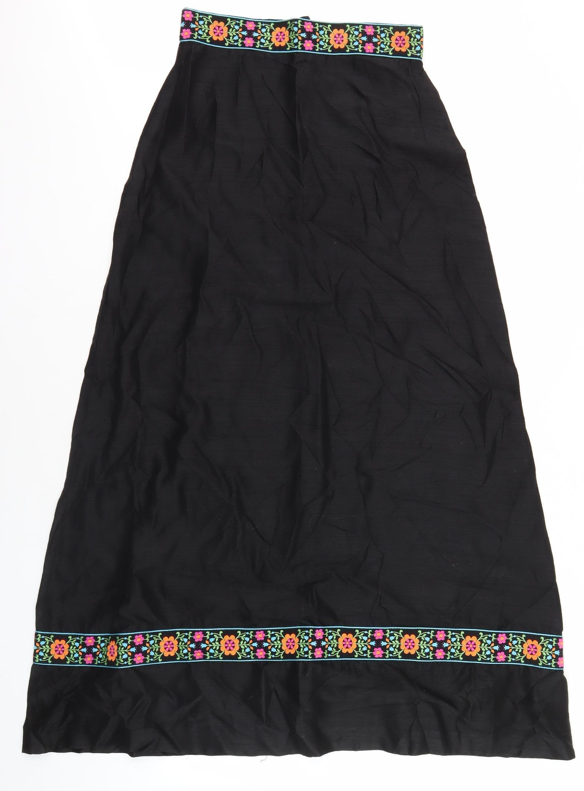 Embrace elegance with this St. André London black long skirt, featuring intricate embroidered accents on the waist and hem. Designed for the sophisticated woman, this skirt combines style and versatility, making it suitable for various occasions. The zip closure ensures a snug fit, while the luxurious fabric provides comfort. Perfect for formal events or as a chic addition to your workwear wardrobe, this piece offers a timeless appeal. Despite its vintage charm, the skirt remains in excellent condition, free from visible flaws. A must-have for any fashion enthusiast looking to elevate their style.