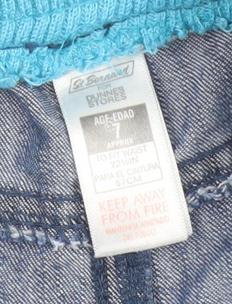 These St. Bernard boys' cargo shorts from Dunnes Stores offer a perfect balance of comfort, style, and practicality for active youngsters. Designed in a versatile medium blue tone, these shorts are made from a soft yet durable blend of 66% cotton and 34% polyester. The cotton ensures breathability and comfort, while the polyester contributes to shape retention and easy care. The lightweight denim-style fabric makes them ideal for everyday adventures during warmer months. Featuring a stretchy elasticated waistband with an adjustable drawstring, the shorts provide a secure and flexible fit, allowing freedom of movement whether playing outdoors or relaxing at home. The roomy cargo pockets on each leg, along with front and back patch pockets, give plenty of space for small items and lend a practical, casual look that kids love. The mid-rise cut and regular fit make them comfortable to wear throughout the day without restriction. Perfect for summer holidays, days out, or casual playtime, these shorts are easy to pair with a t-shirt or polo for a laid-back outfit. Machine washable for convenience, they’re also constructed from easy-care materials that retain their softness and colour wash after wash. With no visible defects and gently worn fabric condition, these shorts are rated as ‘Excellent’. Ideal for parents seeking reliable, comfortable, and fuss-free clothing for their children, this item provides stylish functionality you can trust. Perfectly suited to boys aged around seven years, these shorts will be a staple in any young wardrobe. Practical, comfortable and durable – the St. Bernard boys’ blue cargo shorts are an essential go-to choice for summer wear, blending casual style with lasting quality.