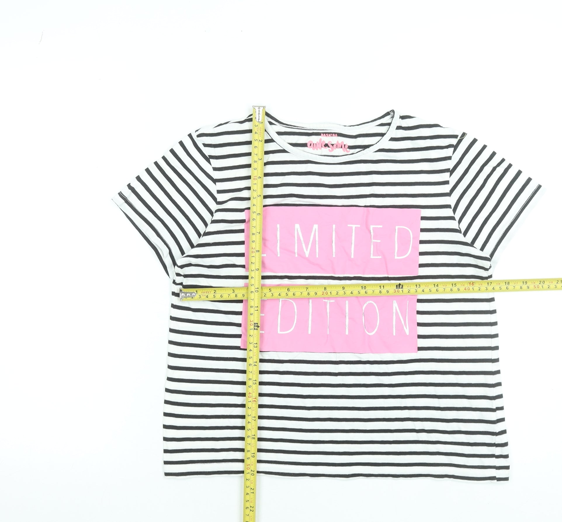 Girls Black Striped Limited Edition Cotton T-Shirt 12-13 Years