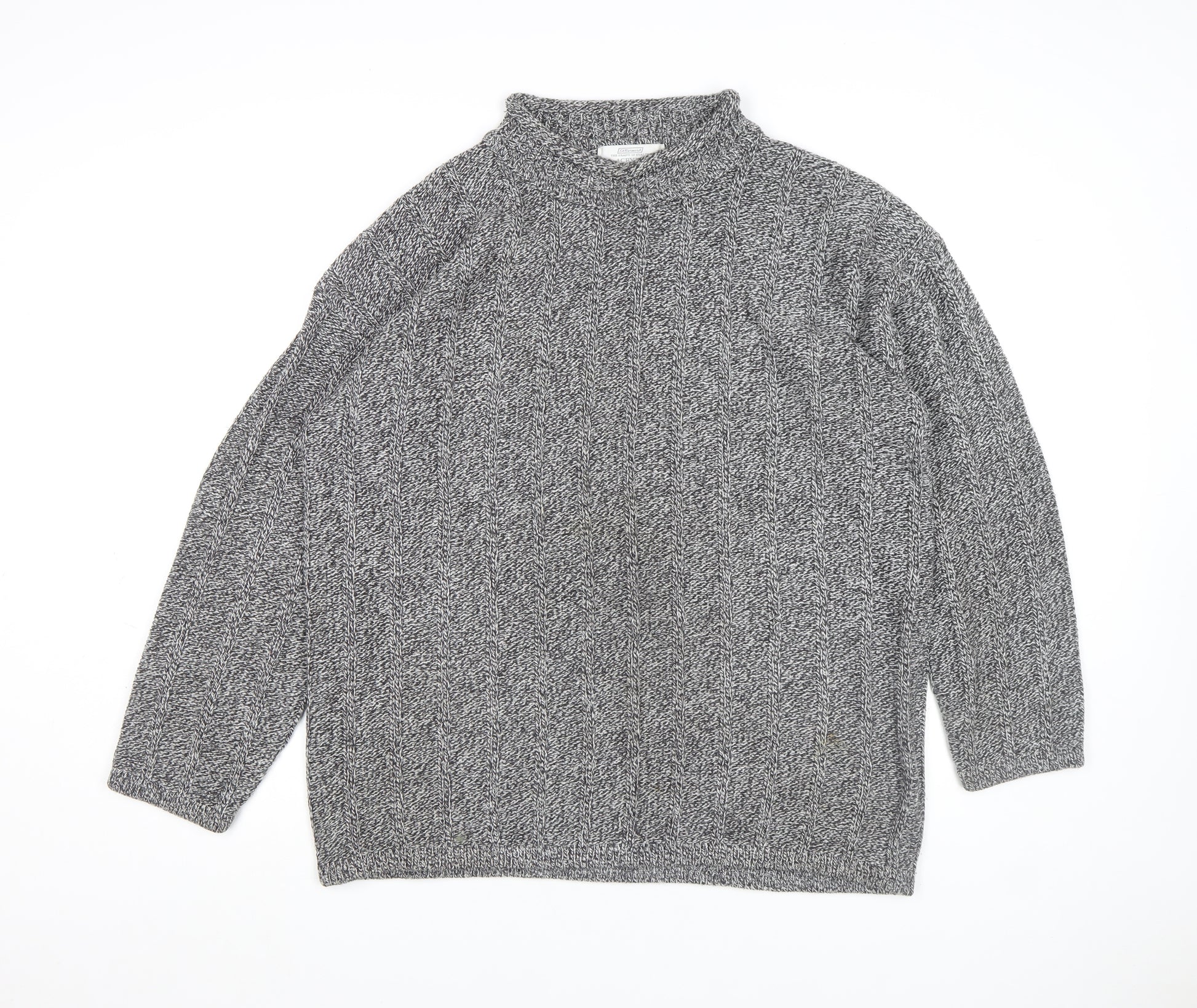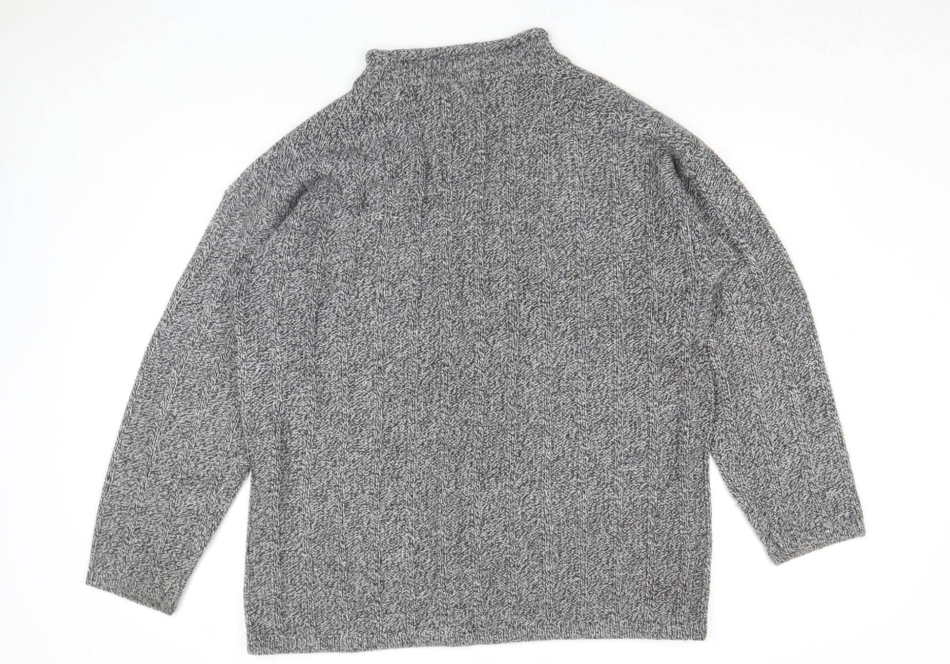Men Grey XL Acrylic Cable-Knit Mock Neck Jumper