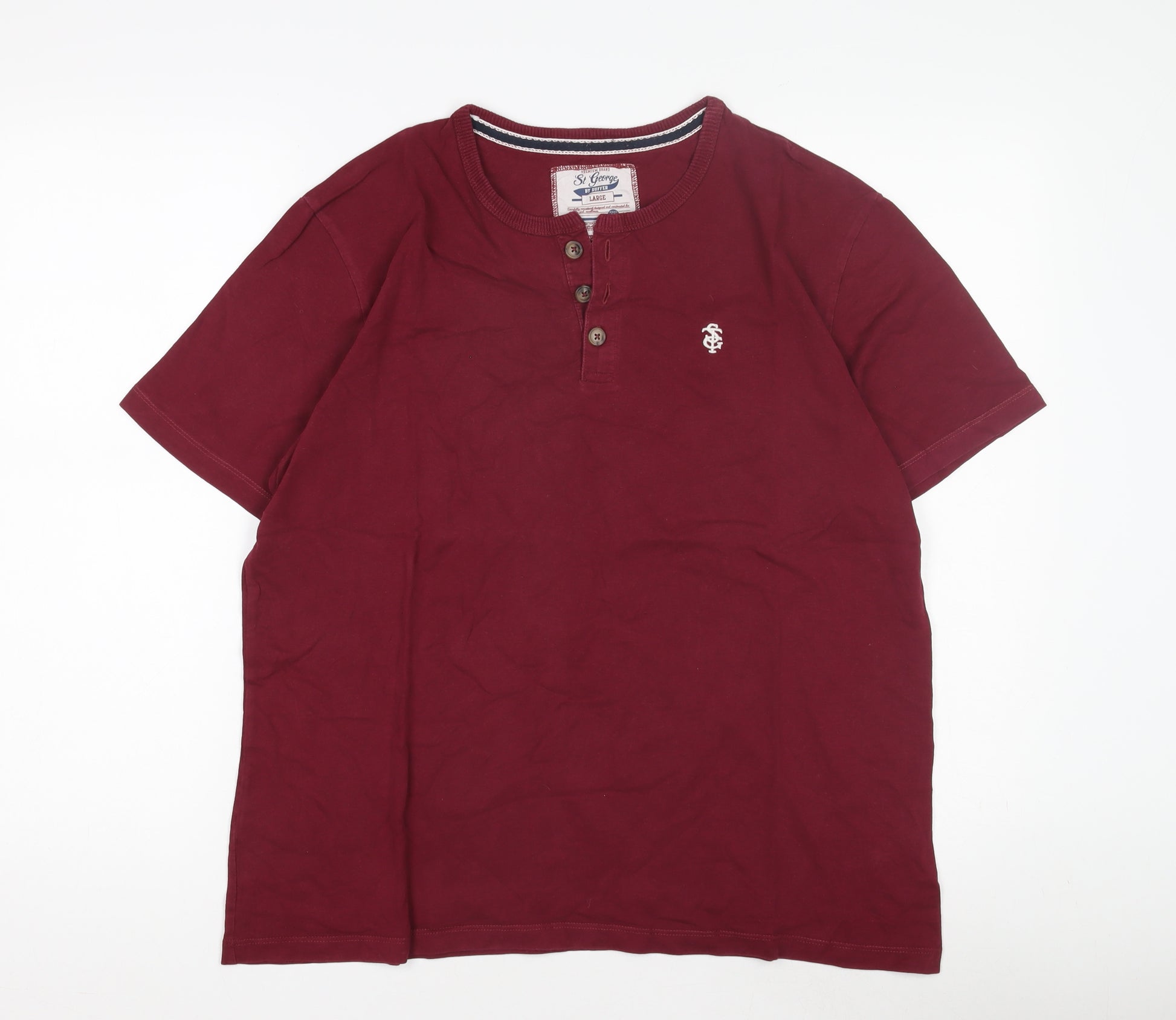 Discover the effortlessly stylish St George by Duffer Men's Henley T-Shirt, designed for those who appreciate comfort and classic style. This short-sleeve T-shirt is perfect for any casual occasion, featuring a striking deep red hue that adds a pop of colour to your wardrobe. Made from 100% cotton jersey, it offers a soft, breathable fit that is ideal for all seasons. The Henley neckline with button accents provides a timeless touch to a versatile piece. Pair it with jeans or chinos for a relaxed yet polished look. Machine washable for easy care, this T-shirt is a wardrobe essential tailored for men who value both form and function. Elevate your everyday ensemble with this premium quality T-shirt that marries practicality with tasteful design.