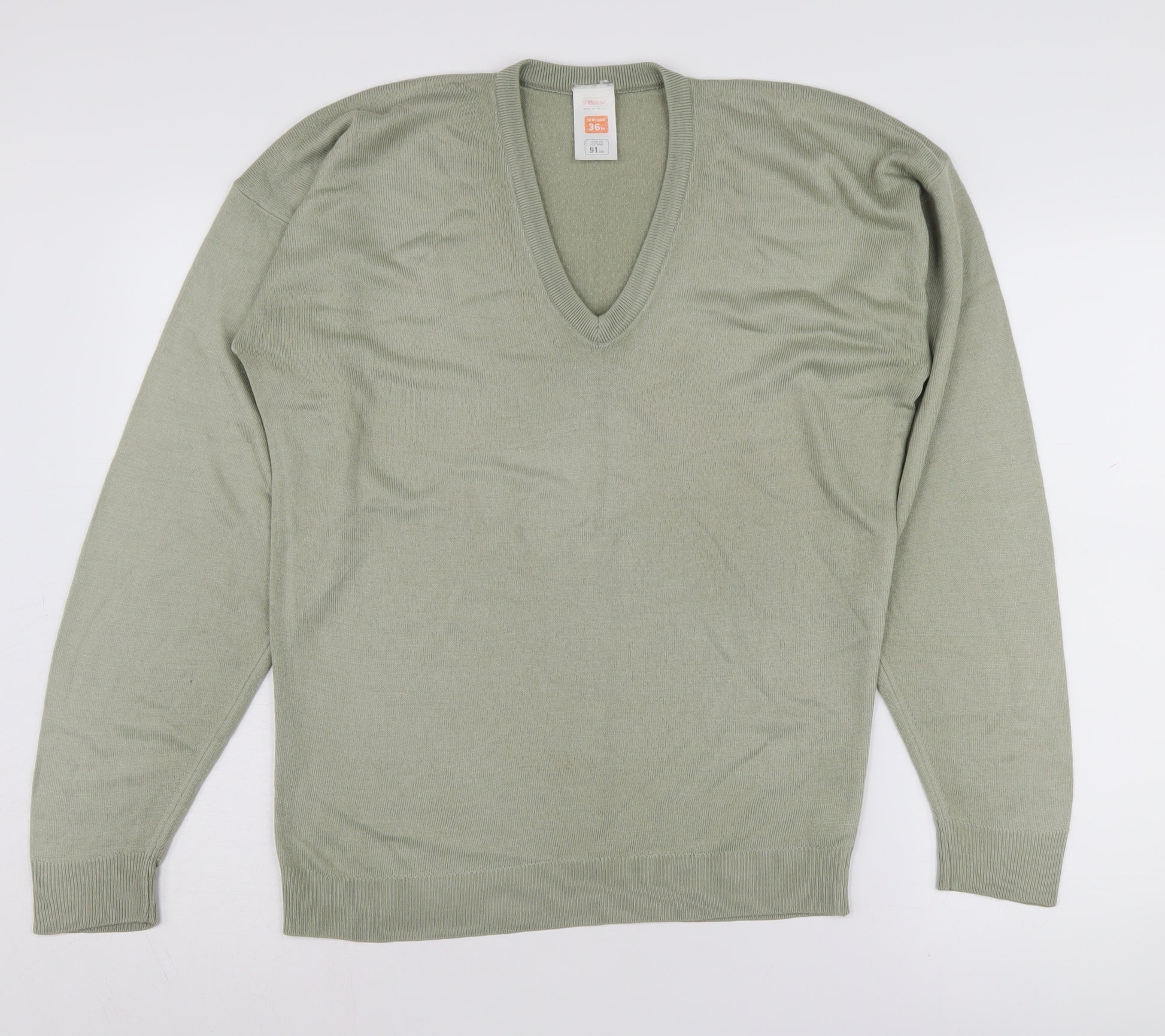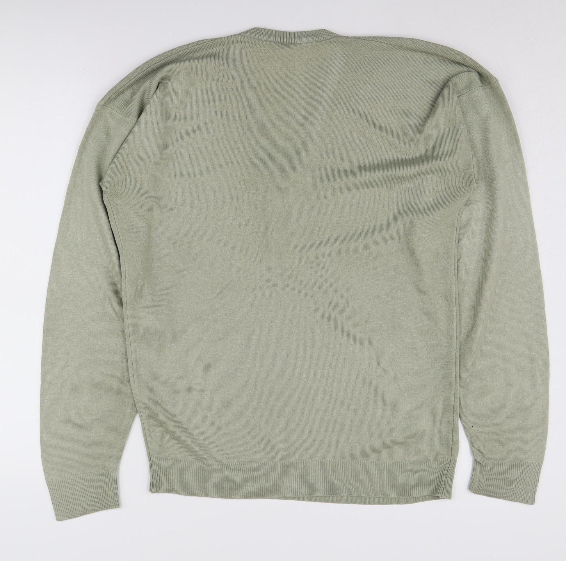 Men's Green Pullover Jumper, S, V-Neck, Vintage