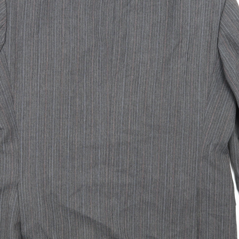 Greenwoods Mens Grey 40 Regular Fit Striped Wool Blend Blazer Jacket
