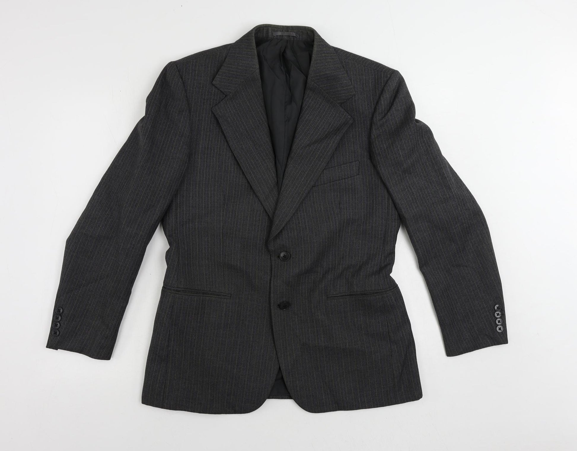 Mens Grey Striped Wool Jacket Suit Jacket Size 38 Regular