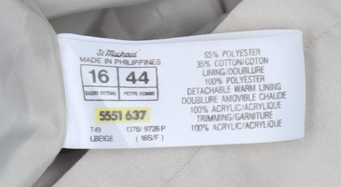 Marks and Spencer Women Beige Long Overcoat Size 16 Polyester
