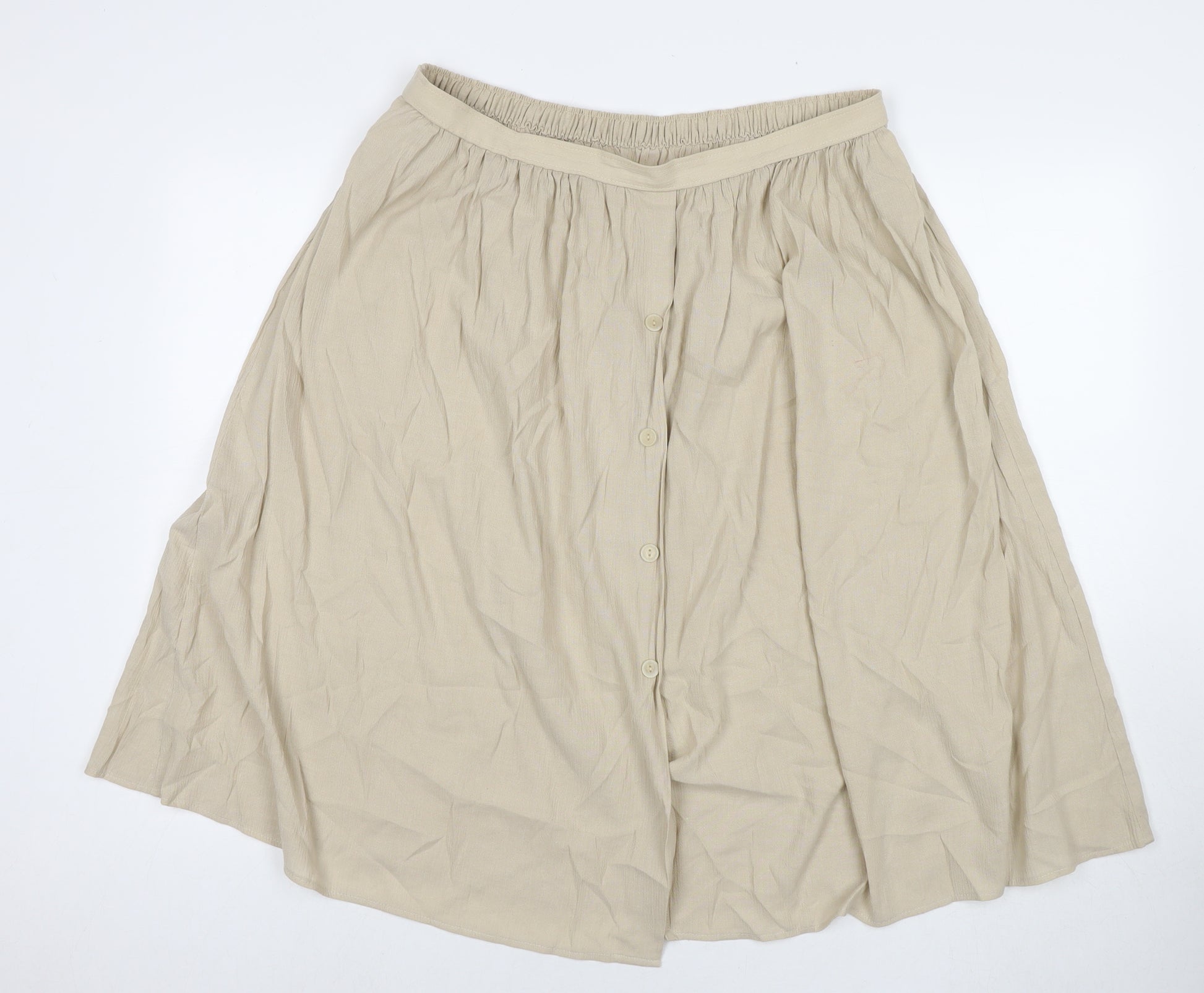 Womens Beige Viscose Flare Skirt Size 18 Button