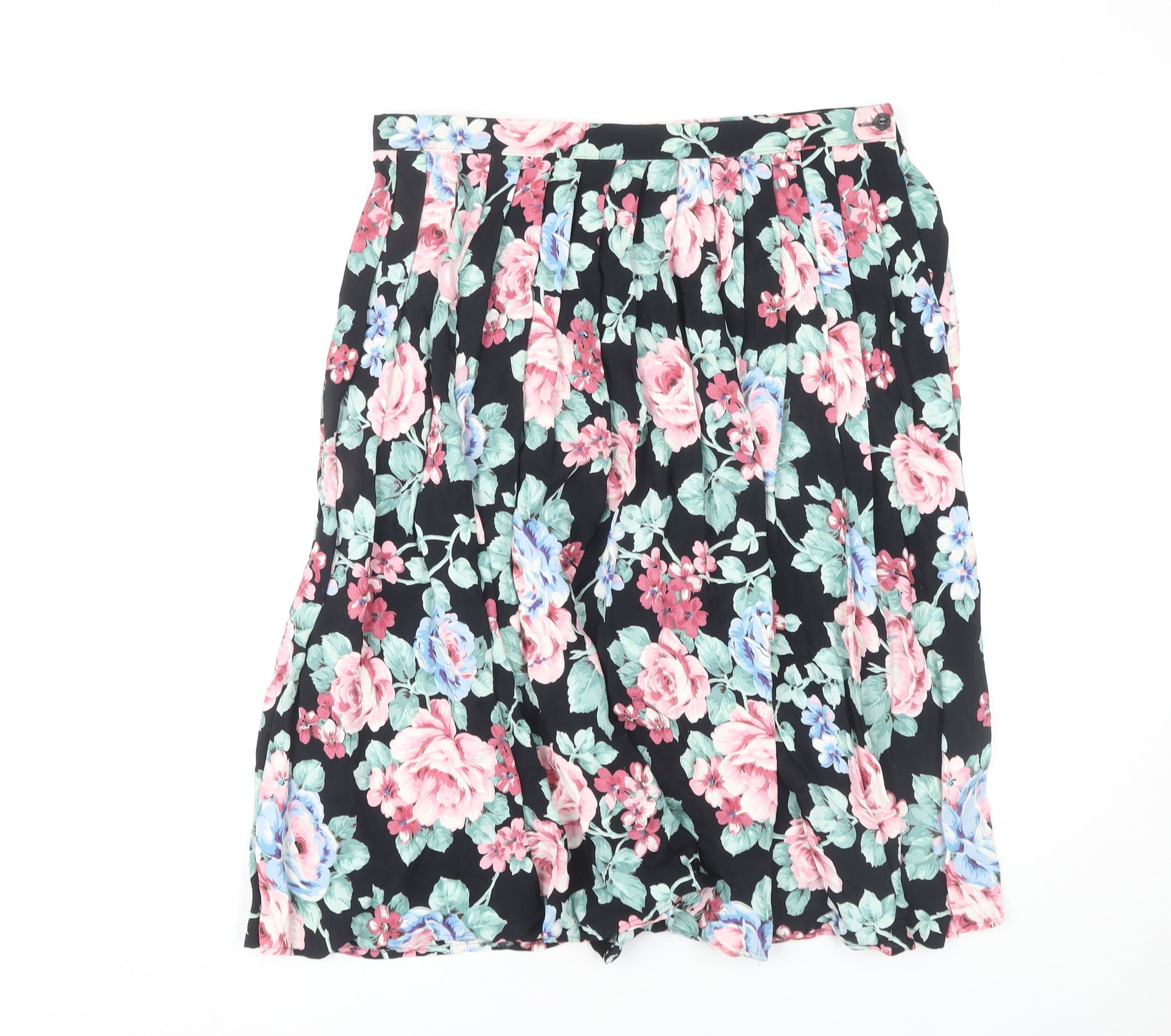 Elevate your wardrobe with this charming St Michael Women's Black Floral Pleated Skirt. Ideal for those seeking a touch of vintage charm, this skirt combines classic elegance with a modern floral design. Crafted to provide both style and comfort, its pleated silhouette allows for graceful movement while maintaining a flattering profile. Made from high-quality viscose, this skirt ensures a soft, luxurious feel against the skin, offering both breathability and durability. Its striking black background enhances the multicolored floral pattern, making it a versatile addition to any wardrobe, suitable for various occasions from casual outings to more formal gatherings. This piece is perfect for expressing your individual style with ease and grace. With its hand wash only care instruction, this skirt emphasizes lasting quality and timeless appeal. Whether paired with a simple blouse for a day at the office or a chic top for an evening out, it stands as a testament to sophisticated style. Perfect for the modern woman who appreciates a hint of nostalgia, this skirt is ready to become a staple in your collection. Don't miss the opportunity to own this exceptional piece at a competitive price.