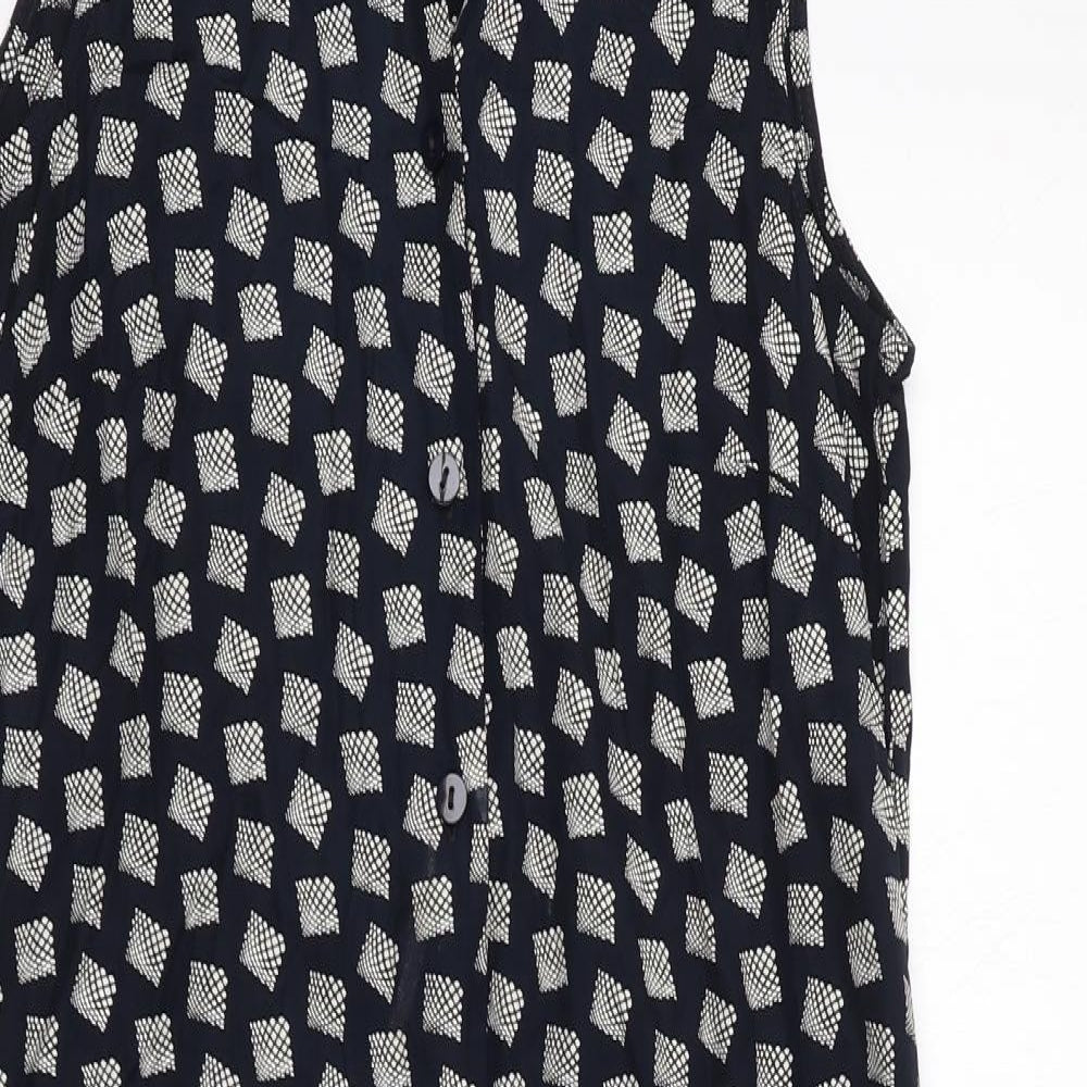 Womens Black Geometric Viscose Shirt Dress Size 8 Collared Button