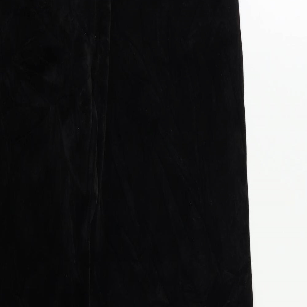 Marks and Spencer Womens Black Velvet Wide-Leg Trousers Size 14