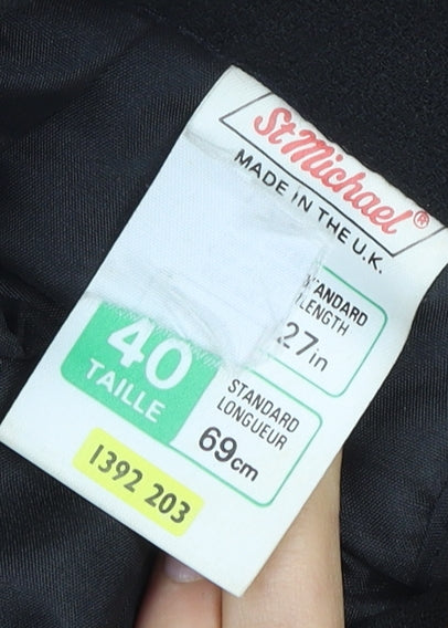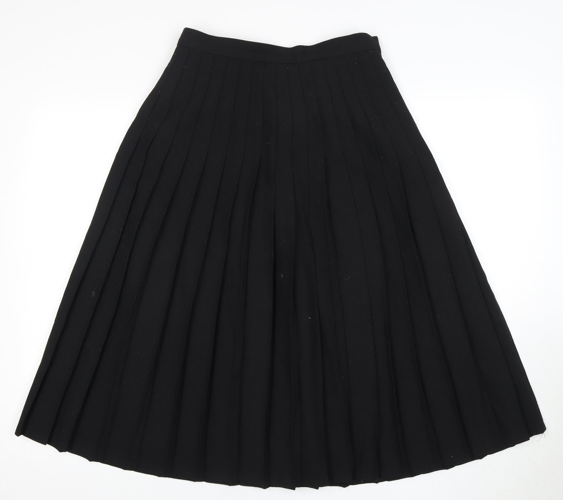 Step into timeless elegance with this St Michael Women's Black Pleated Knee Length Skirt. Crafted for the modern woman seeking a blend of classic style and comfort, this skirt is a versatile addition to any wardrobe. Made in the UK, it boasts an elegant pleated A-line silhouette that flatters all body types. The rich black hue ensures it pairs effortlessly with any top, making it perfect for both casual and formal occasions.This skirt features a fabric blend of 55% polyester and 45% wool, offering both durability and softness against the skin. The knee-length cut provides a modest touch, while the pleats add a touch of sophistication and movement to your ensemble. Whether you're dressing for work, a formal event, or a casual outing, this skirt adapts beautifully to your needs.Maintained in excellent condition, this vintage piece shows little to no signs of wear, ensuring you enjoy its high-quality construction for years to come. With its machine-washable care instructions, maintaining its pristine appearance is effortless.Embrace a skirt that embodies both history and style with the St Michael Women's Black Pleated Knee Length Skirt. Perfect for those with a love for vintage charm, this piece promises to elevate your outfit with its understated elegance.